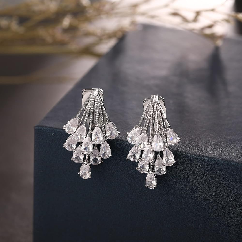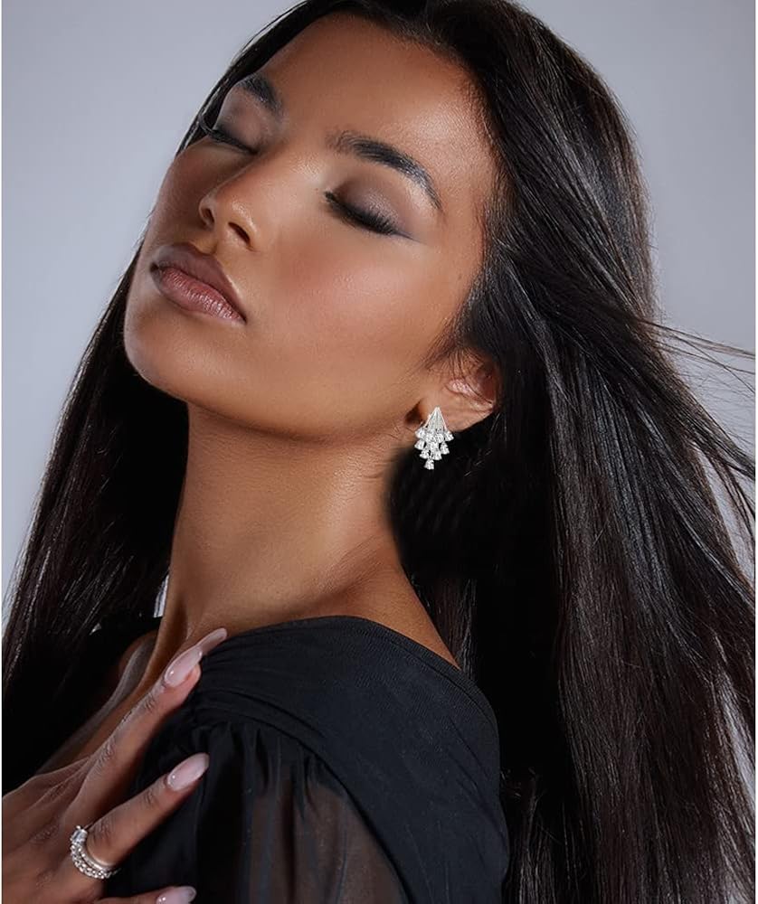 مريحة في الارتداء - لا مزيد من القلق بشأن الثقوب المؤلمة! تم تصميم الأقراط المشبكية الخاصة بنا لتبقى آمنة ومريحة. خفيفة الوزن ومصنوعة من أحجار الراين عالية الجودة، لن تشعر أذنيك بثقلها.