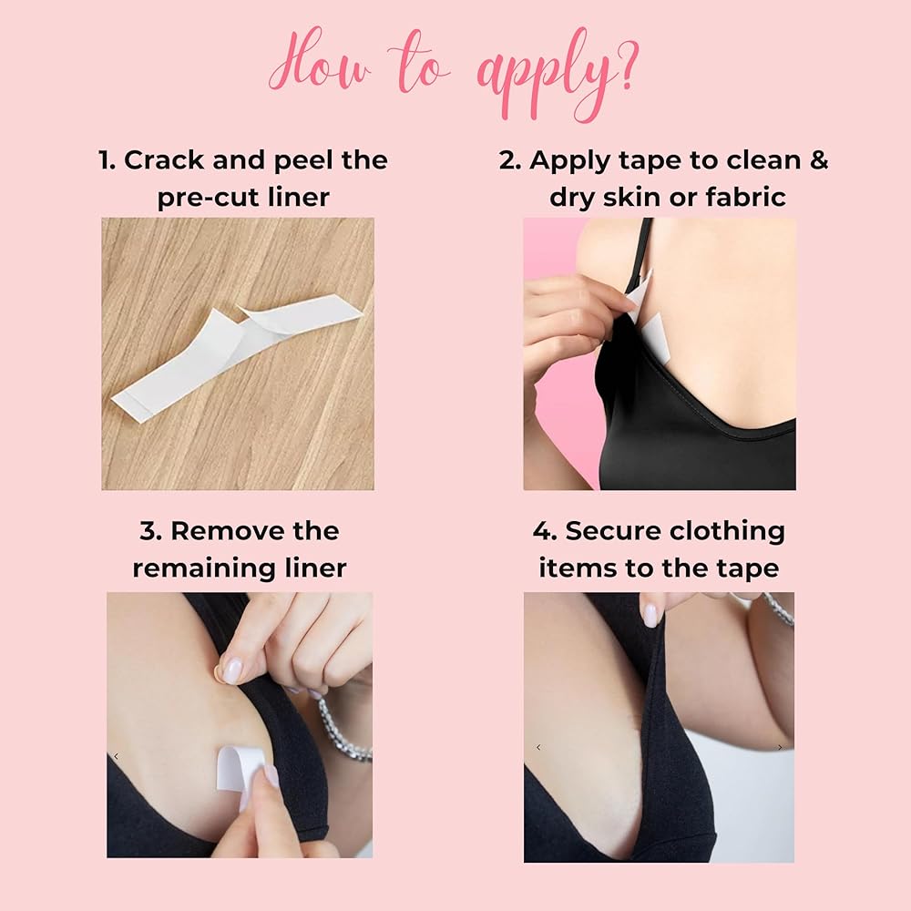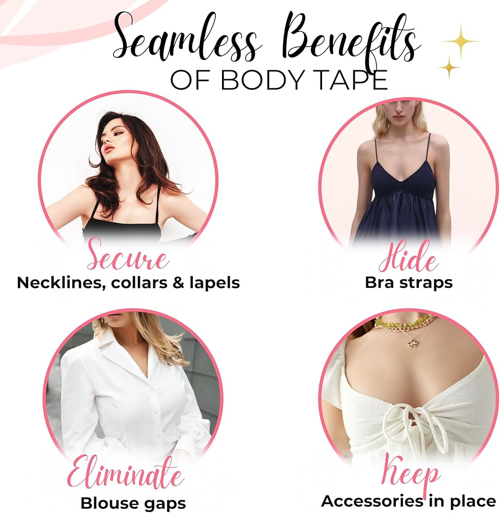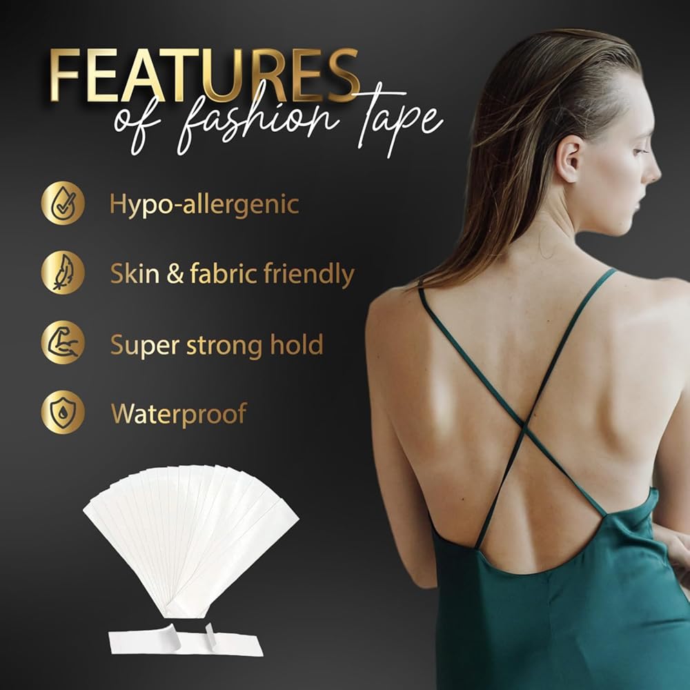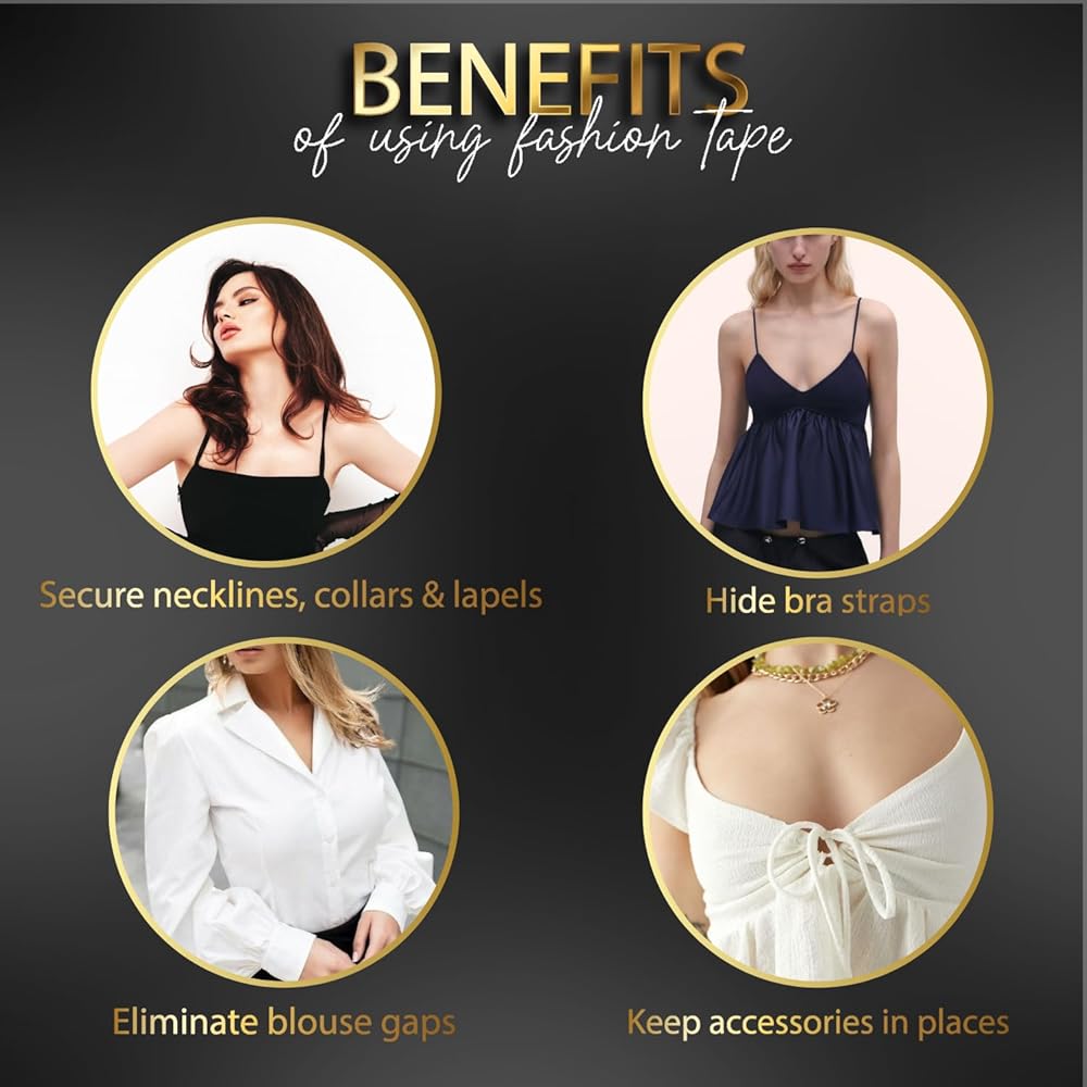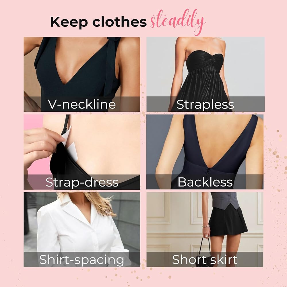 احمل ملابسك بأمان: مصممة باستخدام مواد لاصقة قوية، يمكن للأشرطة تثبيت ملابسك وحواشيك بثبات على بشرتك أو ملابسك الداخلية للحفاظ على ملابسك راقية وأنيقة