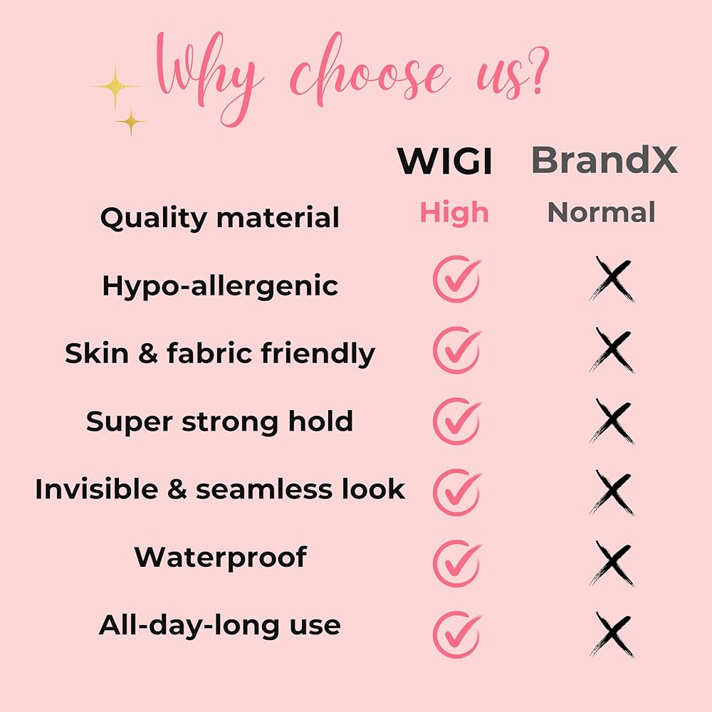 صديق للبشرة، وصديق للنسيج: مصنوع من مواد طبية، الشريط الخاص بنا لا يسبب الحساسية ويمكن استخدامه على أي نوع من أنواع البشرة، حتى البشرة الحساسة. الشريط الخاص بنا غير مرئي ولا يترك أي أثر ولا يمكنه إتلاف ملابسك والأقمشة ذات الثقوب مثل الدبابيس المعدنية