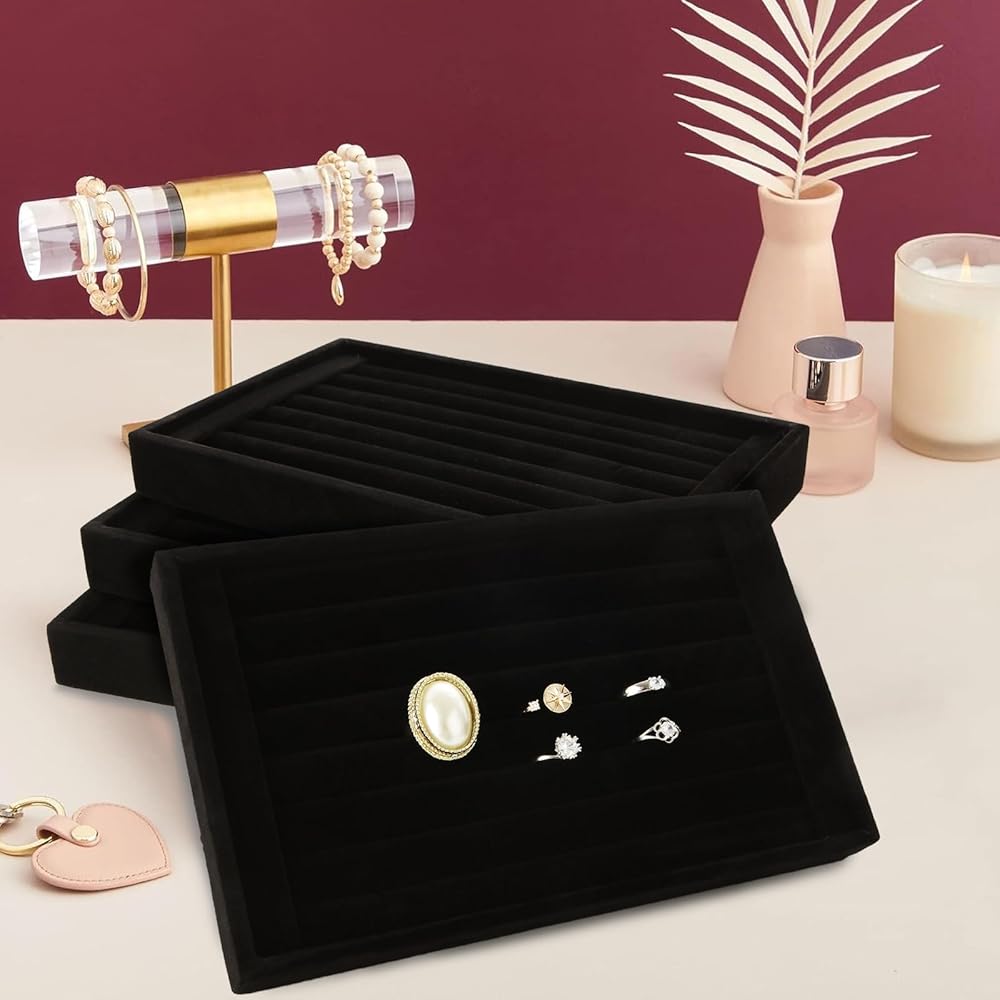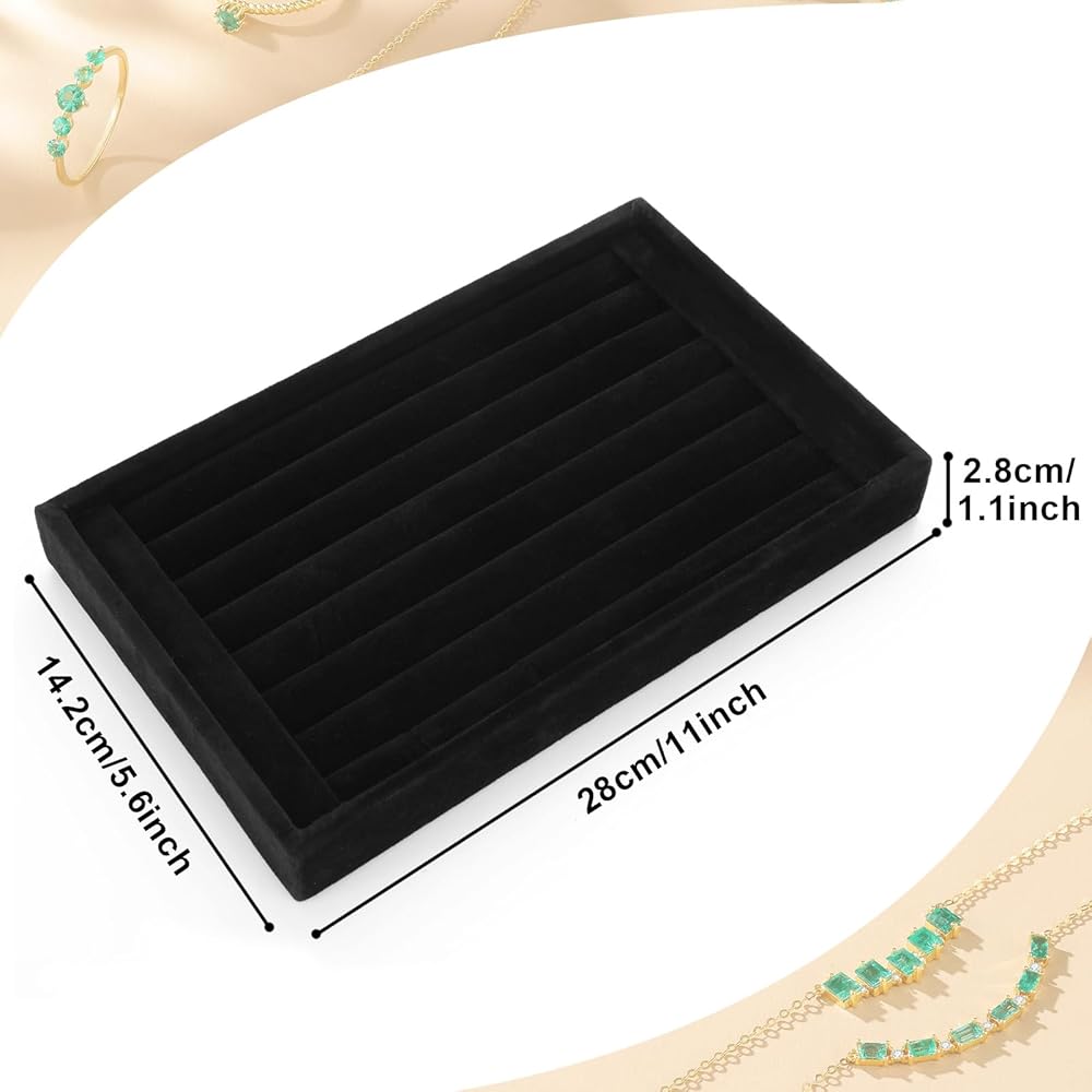ELEGANT VELVET JEWELRY DISPLAY TRAYS: Soft black velvet material looks high class and makes your jewelry stand out, and protecting your jewelry from any kind of damage or abrasion. Against a classic black velvet backdrop perfectly sets off the shine of the jewellery, making it the perfect photographic and display prop.