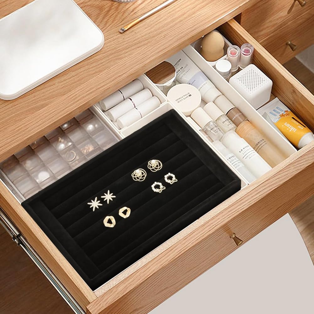 STACKABLE FOR EASY STORAGE: The black foam ring tray can be easily stacked on your dresser or drawer to save space. Prevent your earrings from getting lost, keep your jewellery neatly organised and accommodate your growing jewellery collection.