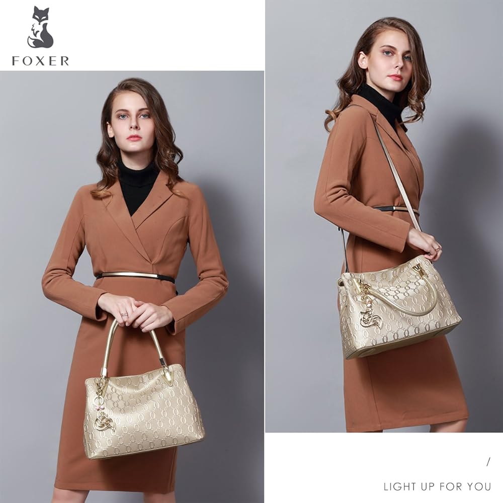 💗 المواد - مصنوعة من جلد البقر المقسوم، ويستخدم الحرفيون لدينا تقنية النقش لطباعة نمط السلسلة على سطح الجلد. بطانة البوليستر حريرية ولن تخدش متعلقاتك الشخصية. يمكن أن تظل إكسسوارات السبائك وحزام الألياف الدقيقة في حالة جيدة حتى إذا كنت تستخدمها لفترة طويلة. يرجى التأكد من أن البائع هو "YF BAG" قبل الشراء للحصول على حقائب اليد FOXER الجديدة وخدمة ما بعد البيع الكاملة.