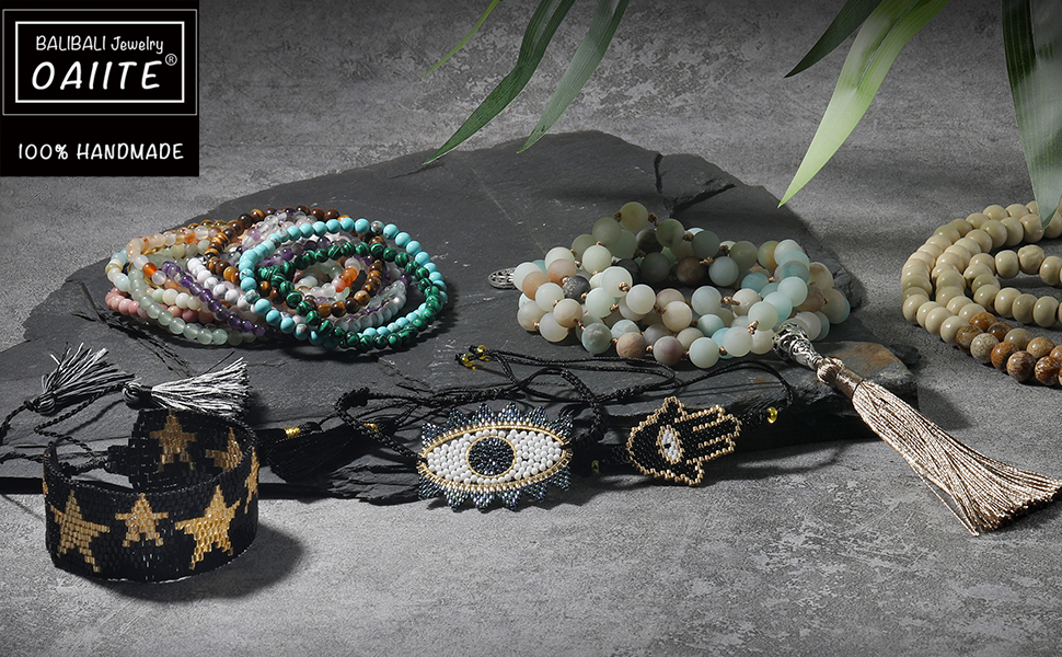 حجم قلادة مالا: الطول 50 سم (19.6 بوصة) طول الشرابة: 8 سم (3.14 بوصة) ، 100 ٪ مصنوعة يدويا بين كل خرزة. سوار قلادة مالا، يمكنك استخدامه كسوار لف أو قلادة! تشمل الحزمة: 1 * قلادة بالي اليدوية ، 1 * صندوق هدايا باليباليبالي، 1 * قطعة قماش جوهرة البالي، 1 * حقيبة هدايا 1 * حقيبة هدايا باليباليبالي.