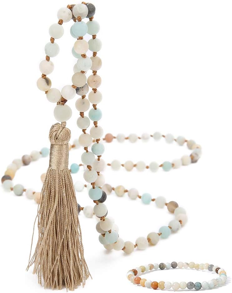 6 مم 108 قطعة خرز أمازوني. 108 هو رقم مقدس، عادة ما يكون 108 خرزة رمزًا لإزالة 108 نوعًا من المشكلات. اسم العلامة التجارية: باليبالي: الخامة: حجر تصويري، أمازون، حجر سبيكل ستون