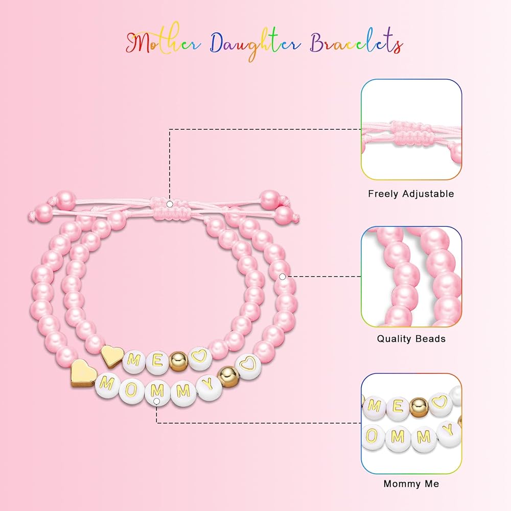 هدية الأم والابنة: مجموعة أساور Mom and me هي هدايا رائعة للمجوهرات للأم والابنة، مثالية لأعياد الميلاد والكريسماس وبداية العام الدراسي والتخرج وعيد الشكر والحفلات وغيرها من العطلات التذكارية الخاصة، بالتأكيد سيحبها طفلك كثيرًا.