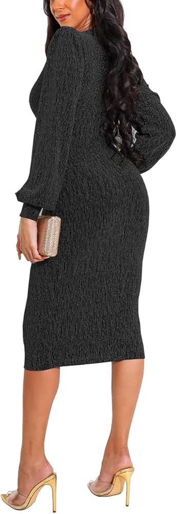 تصميم فريد: كم طويل، رقبة عميقة على شكل حرف V، مادة لامعة، سيتم الترحيب بفساتين Bodycon ذات الضمادات في النادي، وسوف تظهر أفضل ميزاتك في هذه الحفلة المسائية، وتتألق في ليلة النادي عندما ترقص أو تمشي. مقدمة ملفوفة مثيرة ورقبة عميقة على شكل حرف V، وأكمام طويلة، فستان نادي ضيق لامع، لون ثابت، أنيق ومثير.