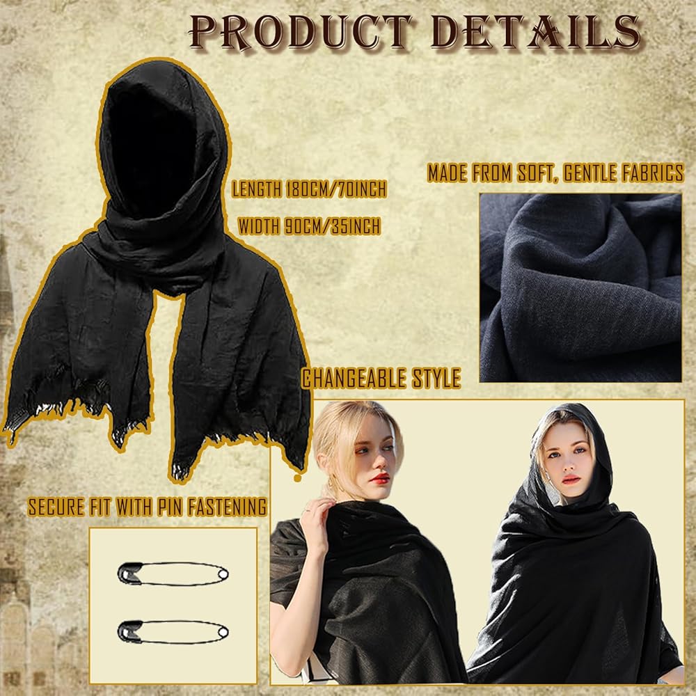 • عباءة ورداء متعددة الاستخدامات: عباءاتنا ذات القلنسوة ضرورية لأي شخصية من العصور الوسطى أو الخيالية. تصميماتنا عالية الجودة مثالية للهالوين والحفلات التنكرية.