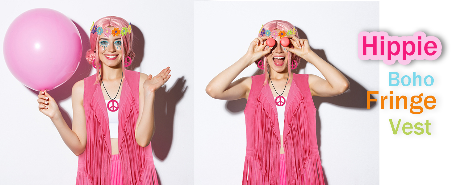 • Hippie vest:wear this pink tassel vest to cardigan to match with T-shirts, sweater, jeans or Dress, you will get your own style and look good in 70s hippie parties.