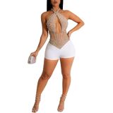 الحفر الساخنة بلا أكمام بذلة قصيرة لؤلؤة شبكة المرقعة Bodycon رومبير