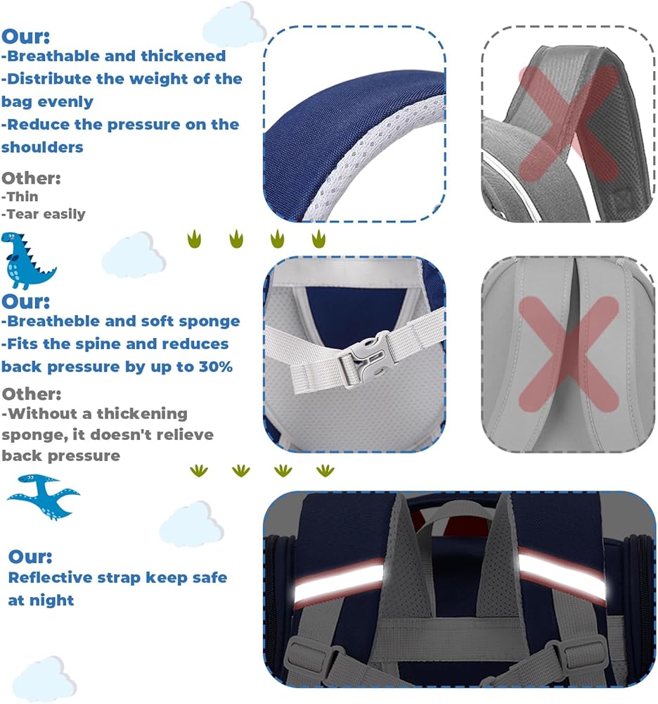 • 【مريحة ومسامية】تتميز حقيبة الظهر المدرسية للأطفال هذه بتصميم مريح، مع إسفنجة سميكة من حزام الكتف المبطن واللوحة الخلفية، حقيبة الظهر للأطفال هذه تجعل طفلك مريحًا عند الارتداء، وتريح كتفه وتقلل الضغط. أحزمة الكتف القابلة للتعديل، تسمح لطفلك بتعديل ارتفاع حقيبة الظهر وفقًا لراحته وطوله، مما يضمن تجربة حمل جيدة.