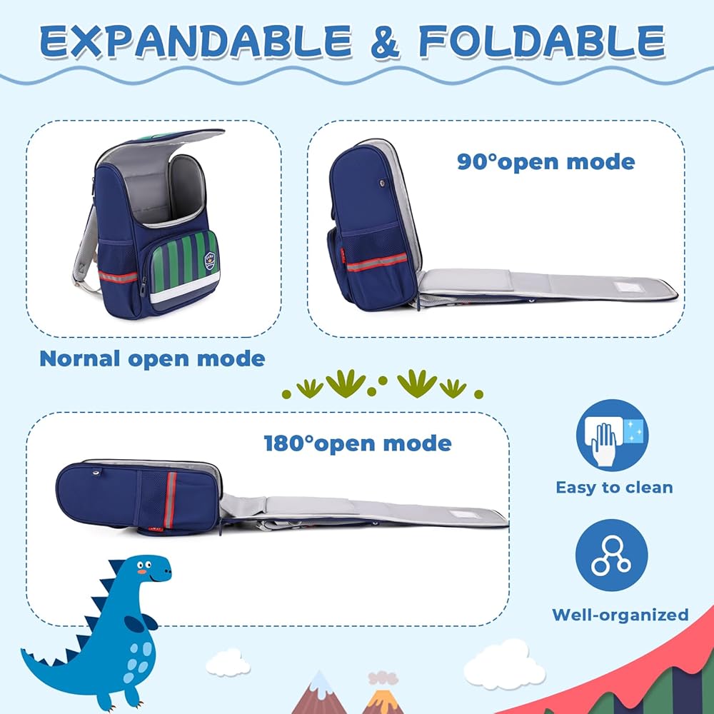 • 【واسعة】تصميم مفتوح بعرض 180 درجة يسمح لأطفالك بتنظيم اللوازم المدرسية بشكل أكثر كفاءة وسرعة وسهولة التنظيف. الحجرة الرئيسية مع حافظة الكمبيوتر المحمول وهي واسعة بما يكفي لتناسب أجهزة الكمبيوتر اللوحية مقاس 12 بوصة، وأجهزة iPad، ومجلدات A4، والكتب النصية، وصندوق الغداء، وما إلى ذلك؛ الجيب الأوسط الذي يحتوي على العديد من الفتحات يناسب الأساسيات المدرسية ودفتر الملاحظات وحقيبة الأقلام. الجيب الأمامي بسحاب يناسب الأشياء الصغيرة؛ الجيوب الجانبية مخصصة لزجاجة المياه والمظلة.