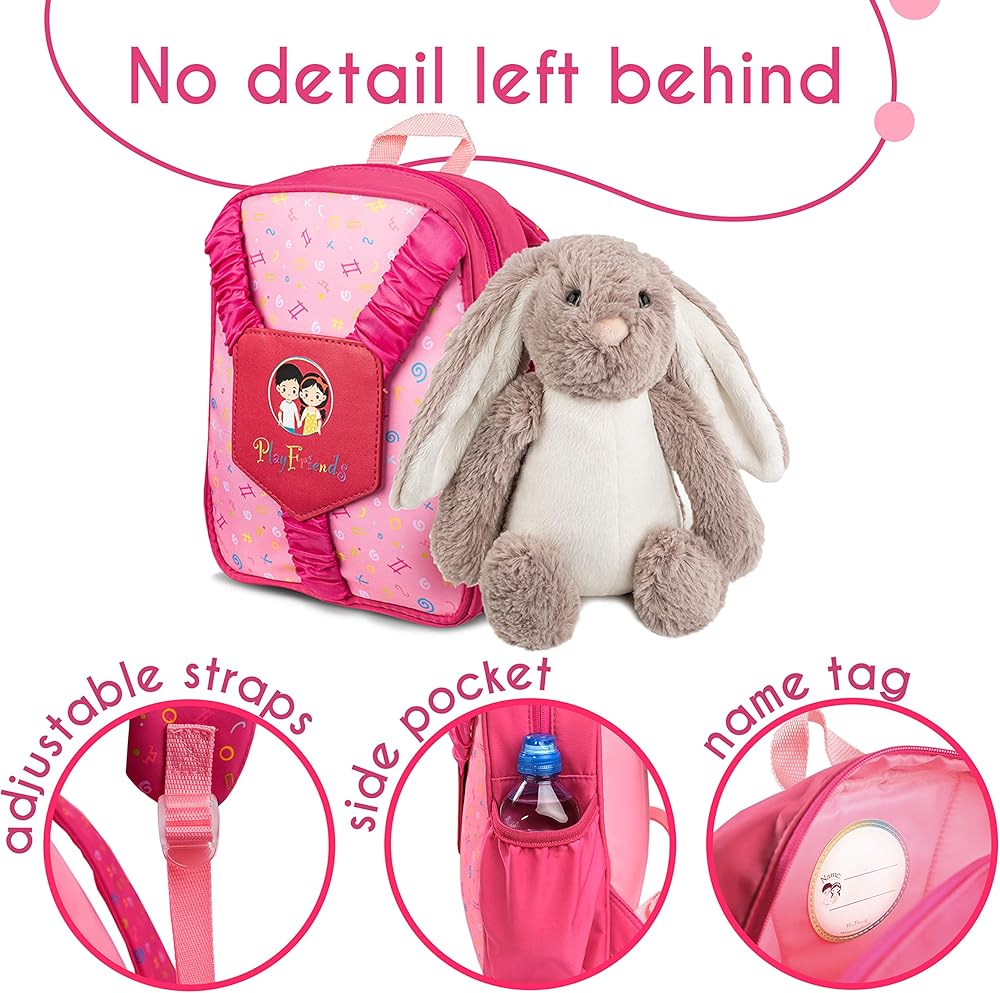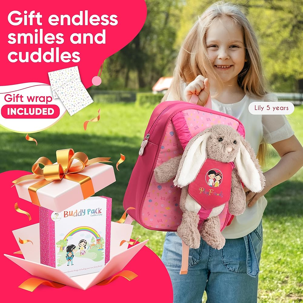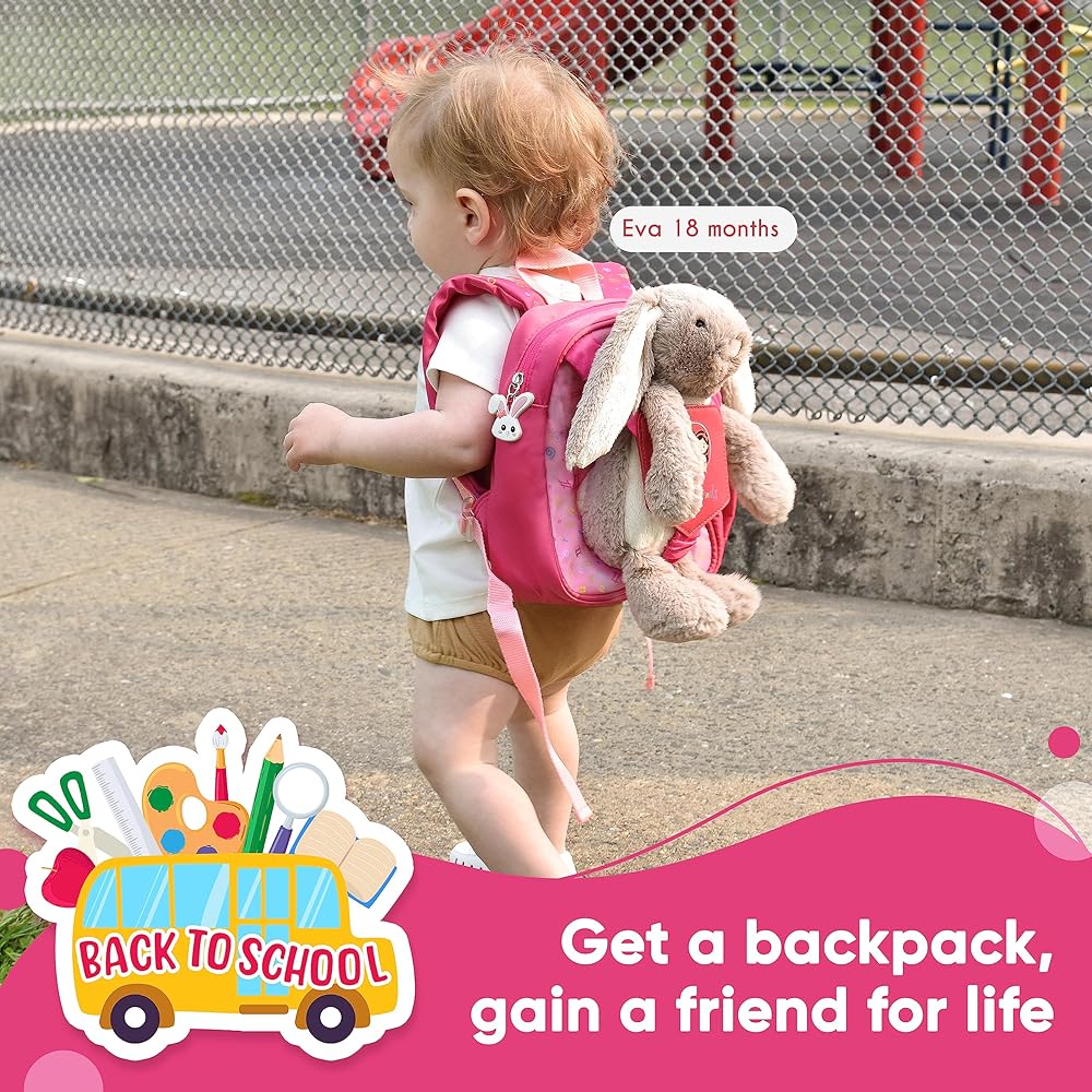 👝[حقيبة ظهر رائعة للأطفال الصغار] حقيبة الظهر المحشوة الخاصة بنا تجلب السعادة ليوم طفلك الصغير مع أرنب لطيف للعب. رائعة كحقيبة أولى لمواعيد اللعب أو الرعاية النهارية أو السفر