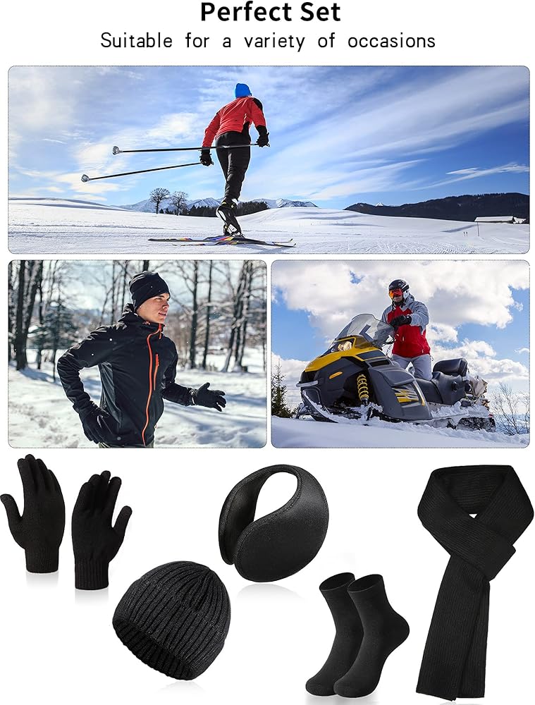 ما تحصل عليه: ستحصل على قطعة واحدة من قبعة الشتاء، وقطعة واحدة من الوشاح، وزوج من القفازات التي تعمل باللمس، وزوج واحد من الجوارب، وزوج واحد من أغطية الأذن، هناك كل 5 قطع من مجموعة الشتاء، والتي يمكن أن توفر لك المزيد من الخيارات