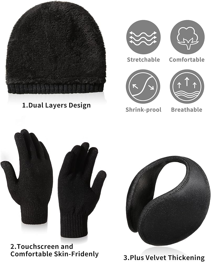 مقاس مناسب: تم تصميم مجموعات قبعات الشتاء الدافئة هذه بمرونة بحيث تكون مناسبة لمعظم مقاسات الرأس والرقبة واليدين والقدمين؛ بالإضافة إلى ذلك، فهي سهلة الارتداء والخلع، فهي مريحة ومريحة للارتداء