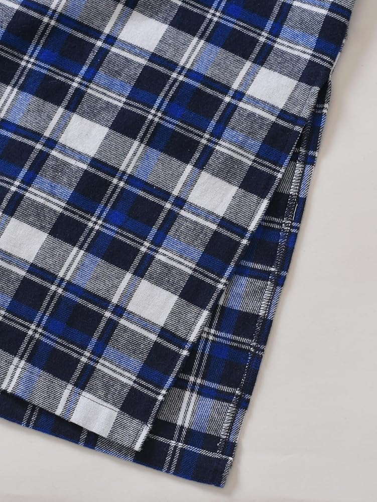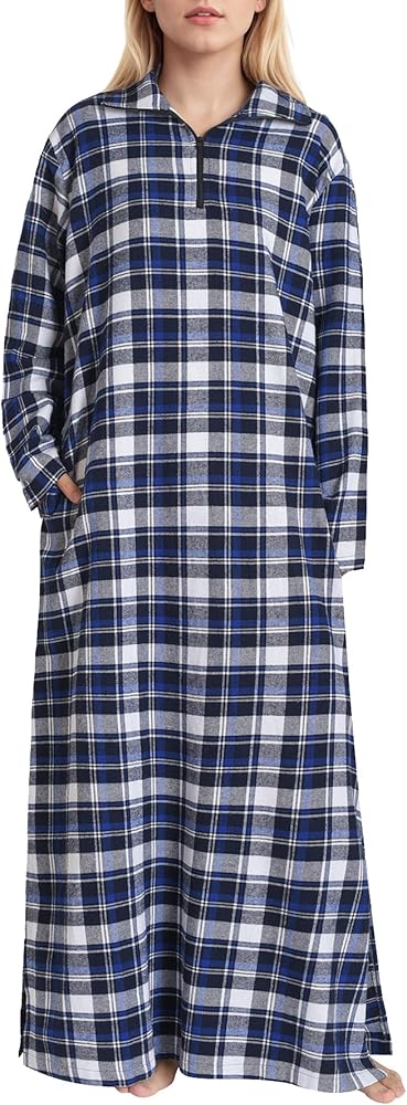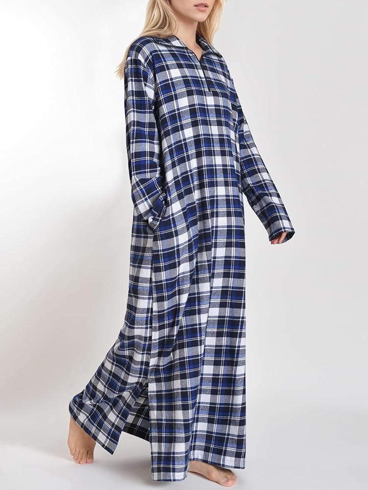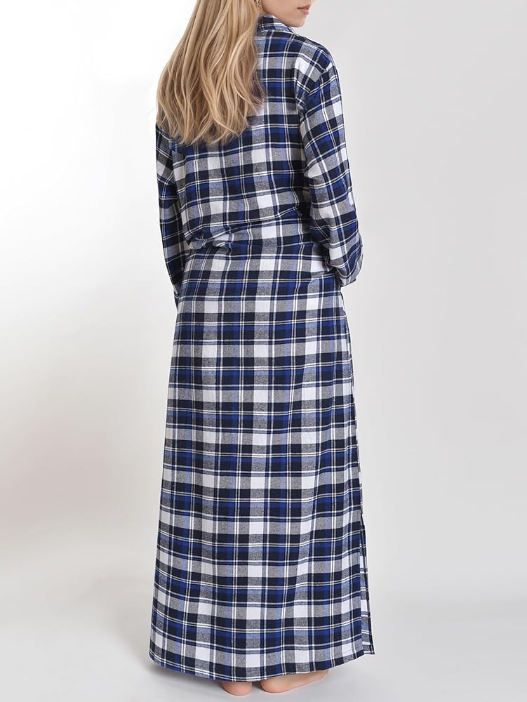- فستان نوم من الفلانيل القطني بأكمام طويلة بأنماط منقوشة