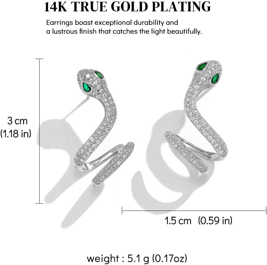 • Elegant Design:The design is made with snake shaped hoops embedded with elements such as zircon. Zircon is very exquisite and elegant., these hoop earrings are a stunning combination of elegance and modern design.