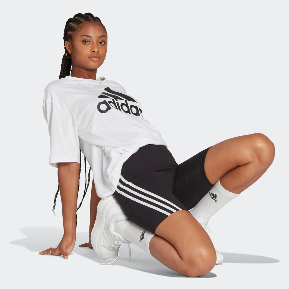 أنيق، أنيق ومريح، هذا الشورت النسائي لركوب الدراجات يحتوي على كل شيء. لديهم خصر مرتفع وقصة ضيقة تعانق الجسم. يتميز التصميم القطني بملمس ناعم، في حين أن الخطوط الثلاثة التي تلتف حول الساقين وشارة adidas الرياضية على الورك تكمل المظهر.