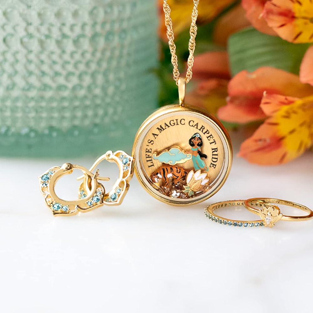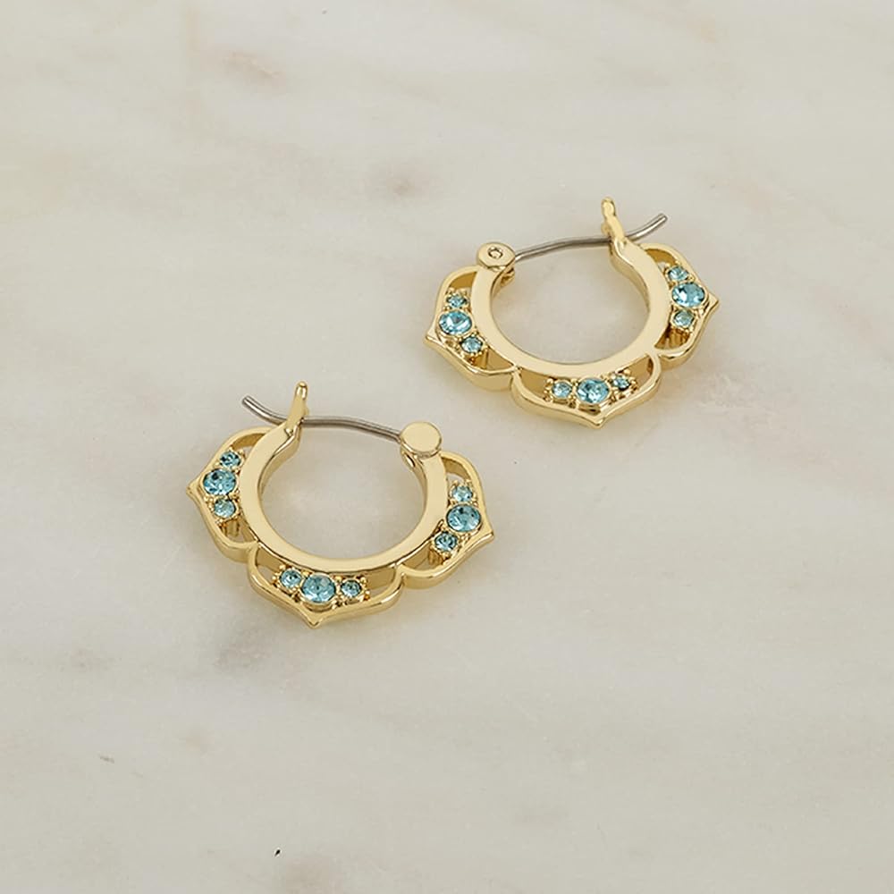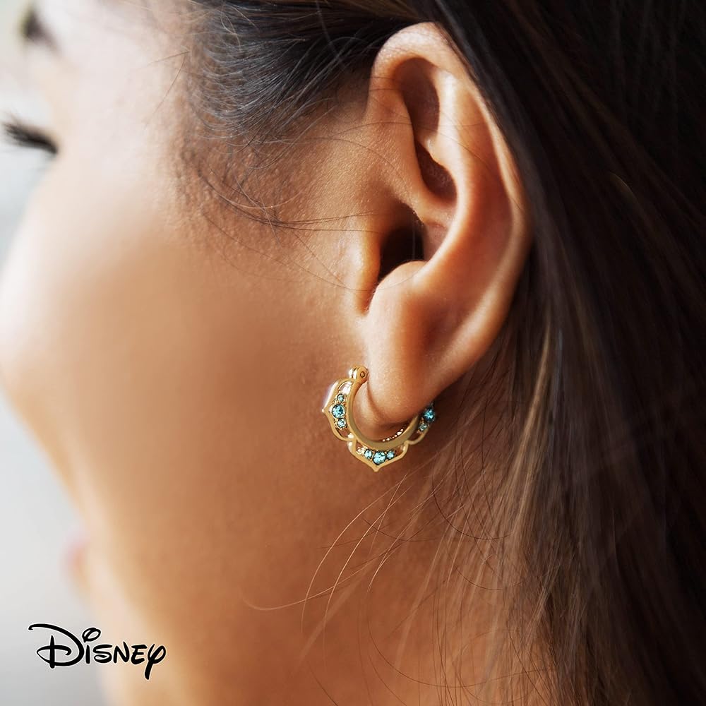 ALADDIN PRINCESS EARRINGS: Gorgeous earrings inspired by Princess Jasmine are here; Disney Gold Mini Hoop Earrings feature aqua crystals that will make you feel adventurous and brave