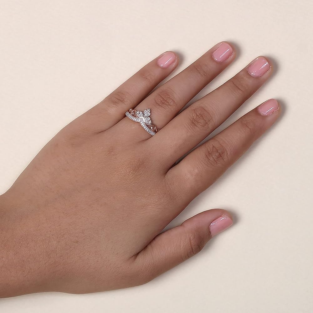 • خصائص خاصة: خاتم الموضة على شكل تاج ماسي جميل ورائع، خواتم الوعد هذه للنساء مصنوعة من 39 قطعة ألماس مستديرة الشكل مع مجموعة شوكية لإضفاء مظهر جميل، خاتم الوعد هذا رائع للارتداء اليومي، حلقات الوعد النسائية هذه مصنوعة من عيار 10 قيراط الذهب الأبيض لجعله فعالاً من حيث التكلفة ومثاليًا. خاتم الوعد هذا رائع لمناسبات الهدايا.