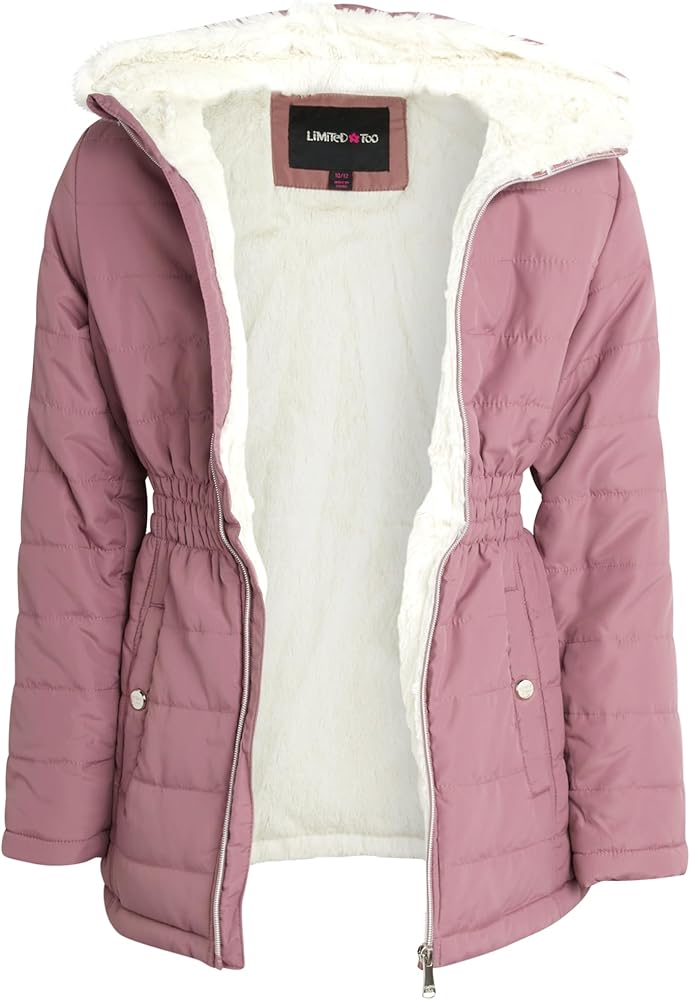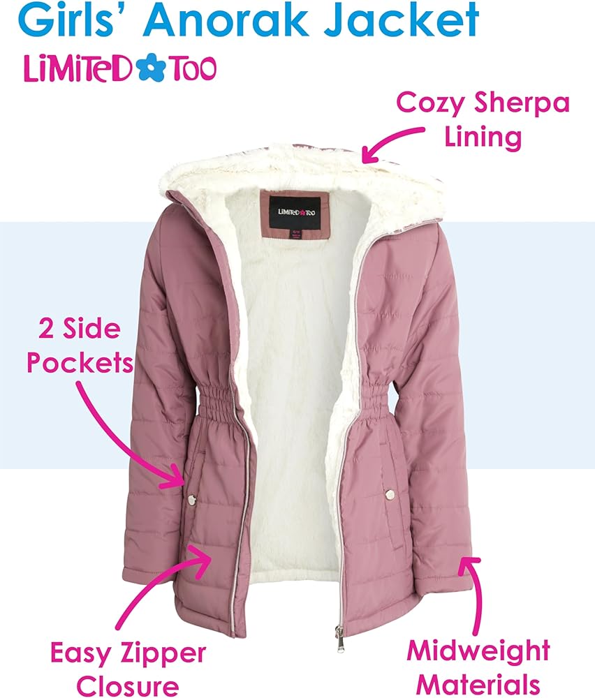معطف متوسط ​​الوزن للفتيات من Limited Too - سترة أنوراك مبطنة بفرو الشيربا الصناعي (الحجم: 7-16)
