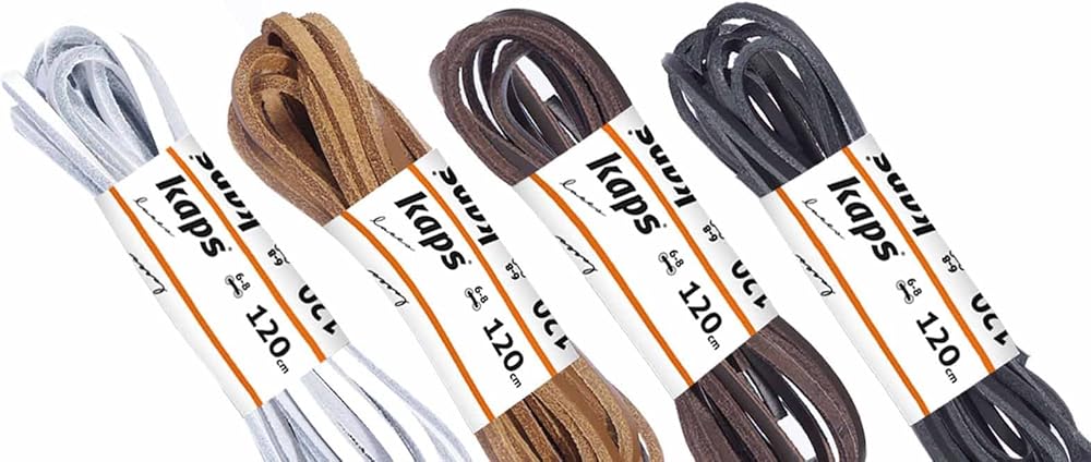 Kaps Leather Laces. Shoe and boot laces for footwear. Various colours and sizes. Chose the one you want from the list. 1 pack contains a pair of laces. The laces have approximately 3 mm thickness. The leather cut is square. Manufactured in Europe. Made of quality 100% genuine leather.