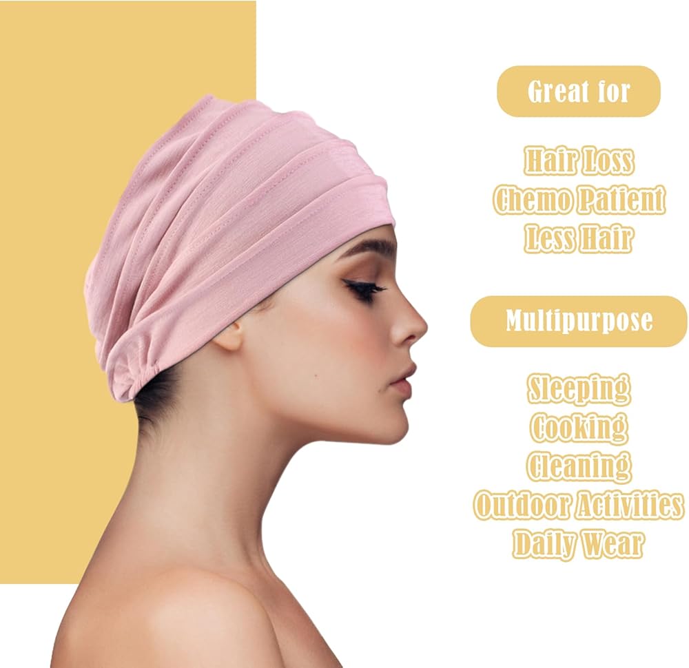 - متعددة الاستخدامات: يمكن ارتداء القبعة في مجموعة متنوعة من المناسبات، مثل أثناء العلاج الكيميائي، أو الأنشطة الخارجية، أو ببساطة كإكسسوار أنيق.