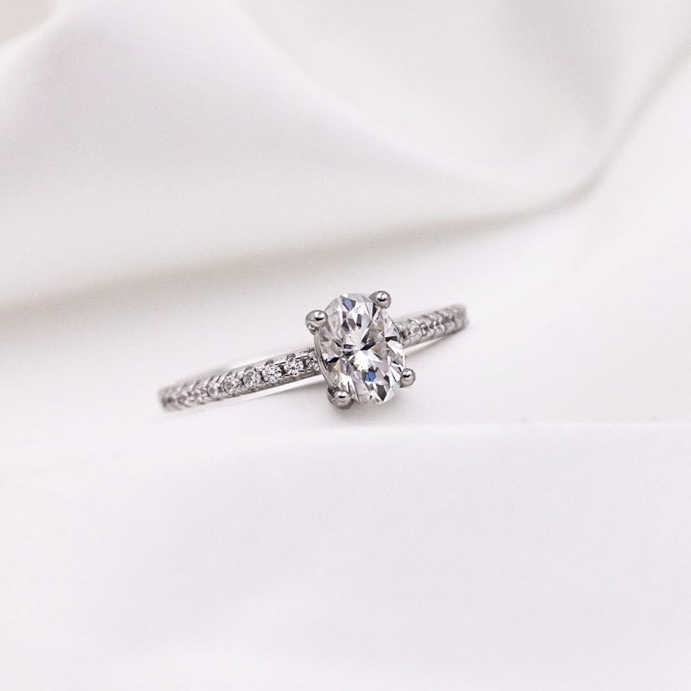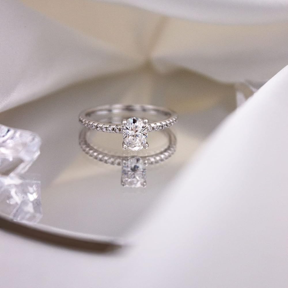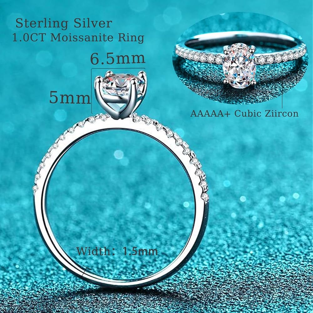 💎المويسانتي والفضة الاسترليني💎 خاتم الخطوبة المويسانتي الخاص بنا مصنوع من مويسانيتي حقيقي بنسبة 100% وهو وضوح 1 قيراط D لون VVS1 وألماس ممتاز مقطوع بشكل بيضاوي تم تصنيعه في المعمل. كما أن الحزام مرصع بهالة من الزركون المكعب. المعدن الخاص بحلقة شريط المويسانتي الخاص بنا هو الفضة الإسترلينية. مريحة وآمنة للارتداء. خالية من الرصاص وخالية من النيكل.