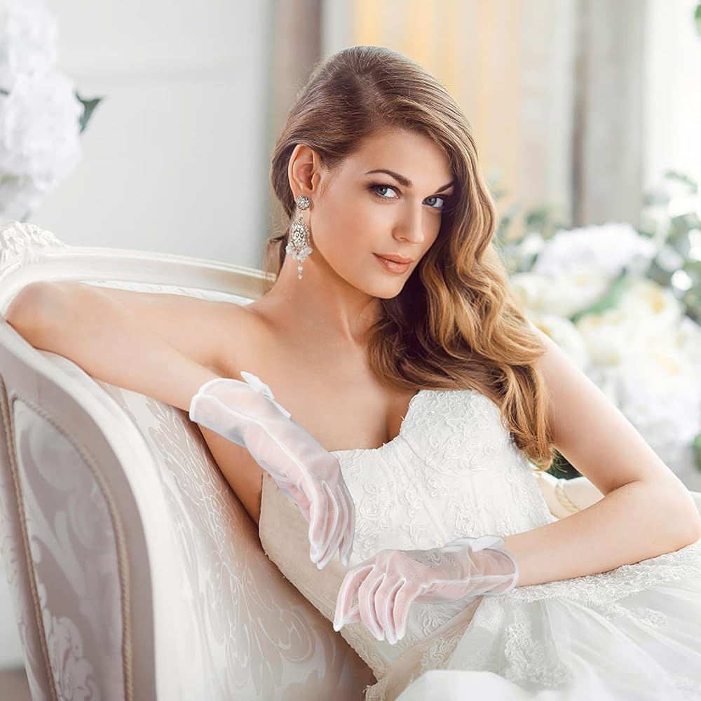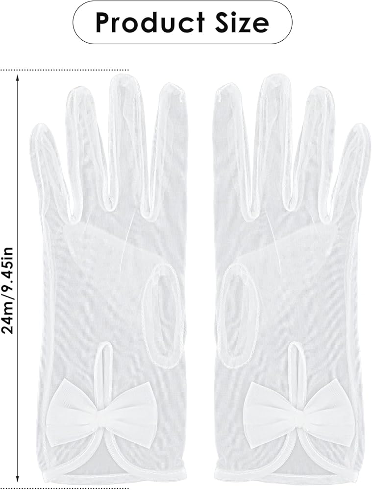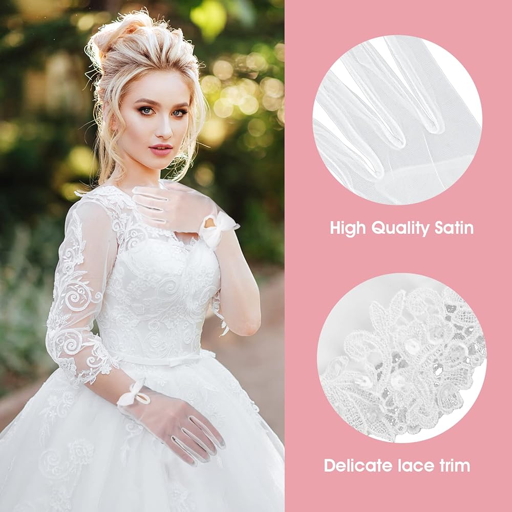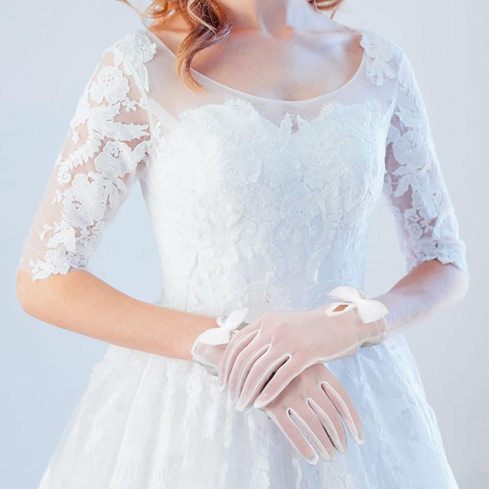 • مادة ناعمة: القفازات البيضاء القصيرة الشفافة للسيدات مصنوعة من التول عالي الجودة، وخفيفة الوزن، ومسامية، ومريحة للارتداء طوال اليوم. تصميم بسيط وعتيق بدون أي أنماط معقدة لإظهار أناقتك للغاية.