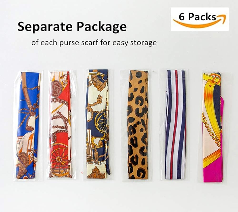 أنيقة وجميلة حقيبتك: تأتي أوشحة المحفظة مع 6 قطع (12 قطعة)، مجموعة كبيرة ومتنوعة من الألوان والأنماط والتصميمات النابضة بالحياة. ما عليك سوى لف هذه الأوشحة لتصميم مقابض حقيبتك وحقيبة اليد الفاخرة لإضفاء لمسة جمالية عليها! لا قيود الموسم ولا قيود السن! تطابق جيدا الزي الخاص بك.