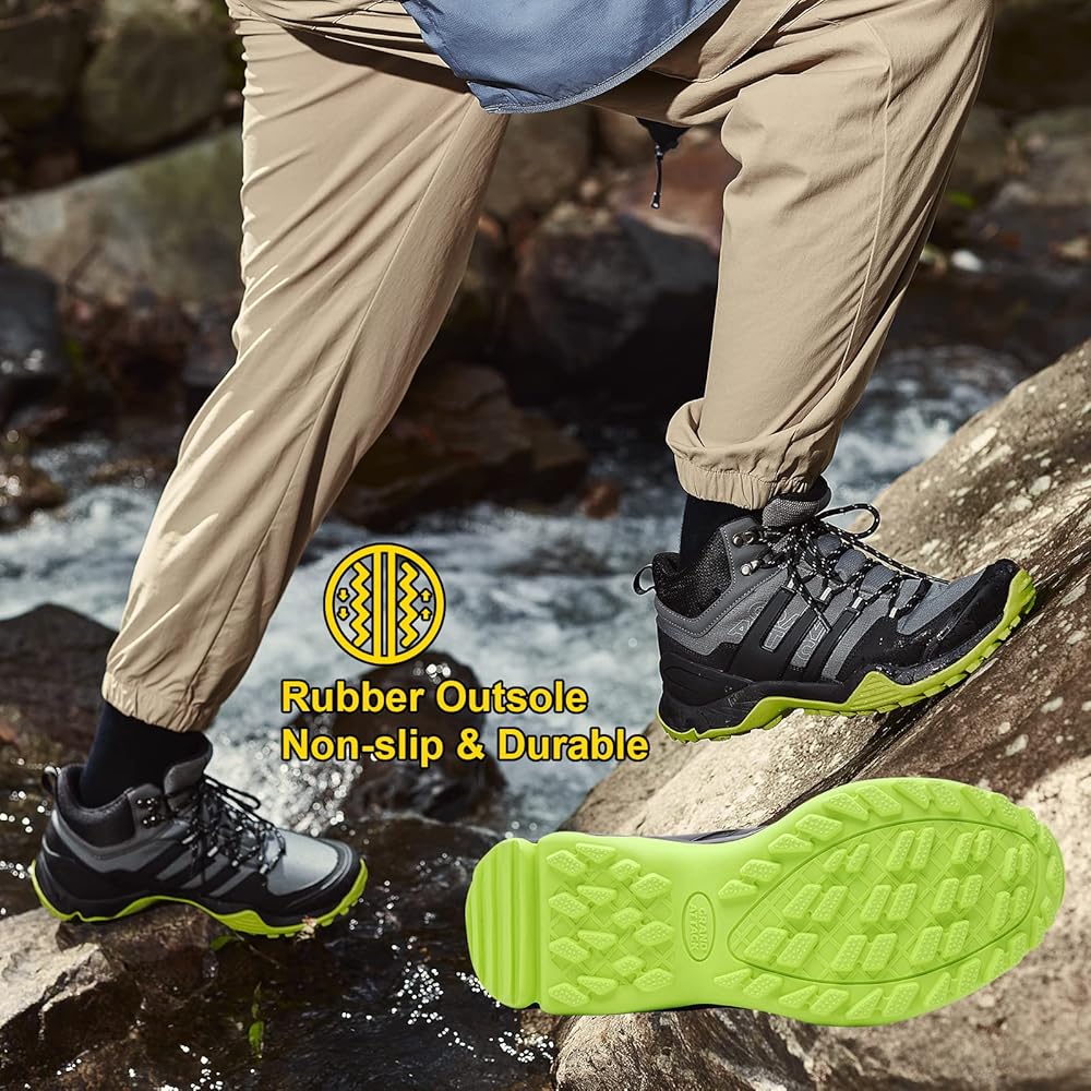 أحذية المشي لمسافات طويلة للرجال مقاومة للماء، أحذية رجالية عالية الكاحل للمشي لمسافات طويلة في الهواء الطلق خفيفة الوزن للرحلات