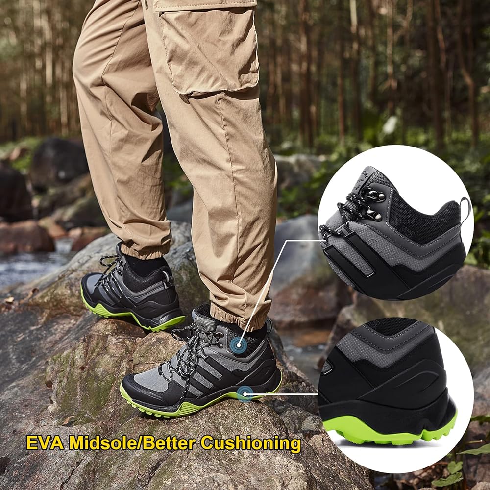 • 【قبضة قوية وتبطين】تستخدم أحذية المشي لمسافات طويلة الرجالية نعل أوسط EVA ونعل خارجي مطاطي؛ نعل أوسط مرن من مادة EVA مع بطانة ممتازة لتقليل إجهاد القدم وامتصاص الصدمات، نعال مطاطية متقدمة توفر قبضة ثابتة وموثوقة في مجموعة متنوعة من البيئات.