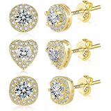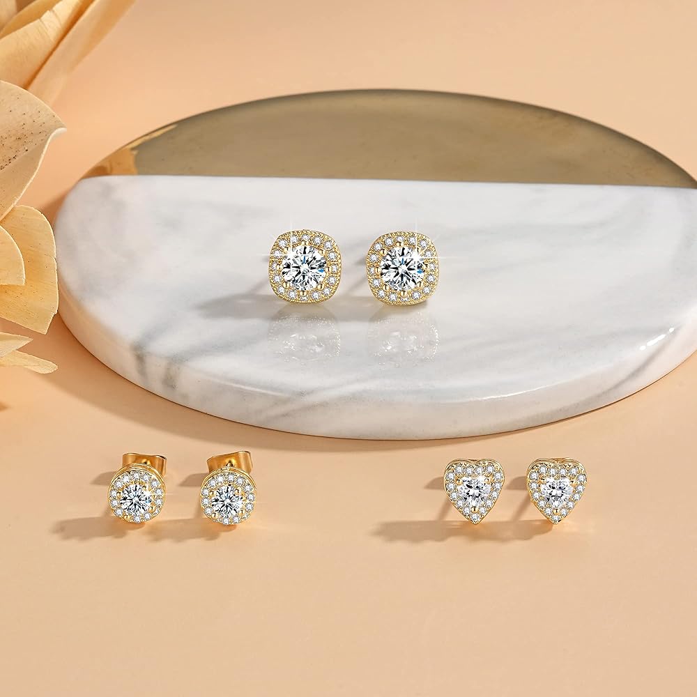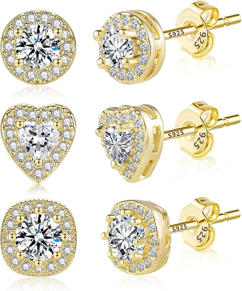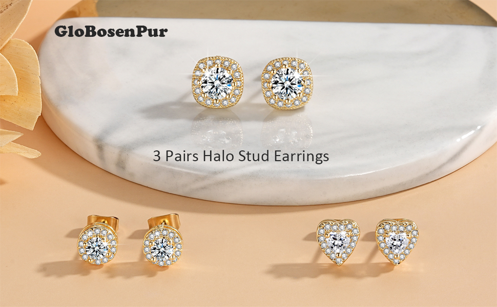 أقراط بايف المرصعة: هذه المجموعة من الأقراط الذهبية تتضمن ثلاثة من أقراط الزركونيا المكعبة الرائعة، كل منها على شكل دائري ومربع وقلب. تم تصميم أقراط الهالة بدقة مع زركونيا مكعب من الدرجة AAA+ لزيادة تألقها وبريقها، وبالتالي رفع مظهرك العام وحصولك على عدد كبير من الإطراء.