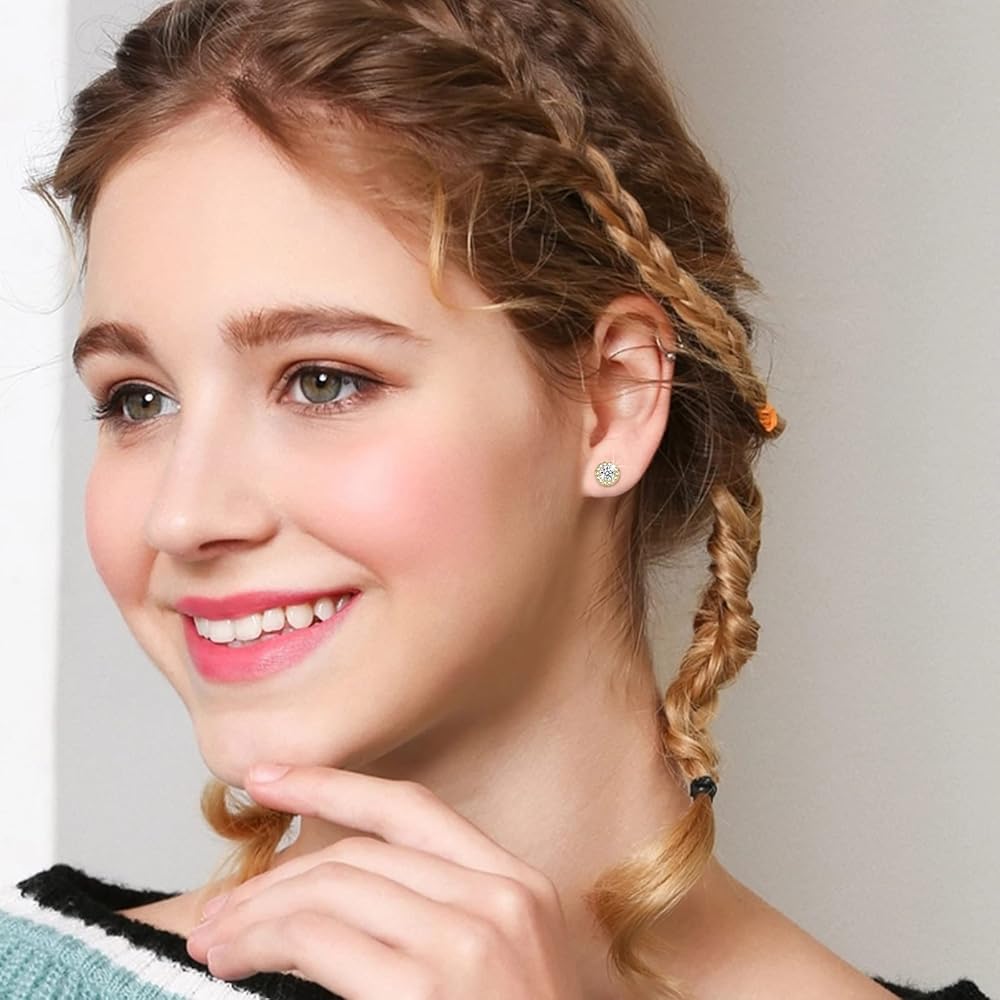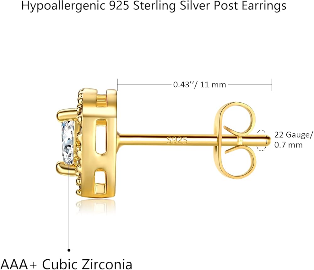 أقراط زركونيا مكعبة ذات جودة ممتازة: يتكون المكون المعدني لهذه المجموعة من الأزرار الذهبية من النحاس، المطلي بالذهب عيار 14 قيراط ومزين بزركونيا مكعب بجودة عالية من درجة AAA+. أعمدة القرط مصنوعة من الفضة الإسترلينية عيار 925. تتميز هذه الأقراط المرصعة بالألماس بأنها متينة ومقاومة لتغير اللون ولا تفقد بريقها ولا تسبب الحساسية لأولئك الذين لديهم آذان حساسة.