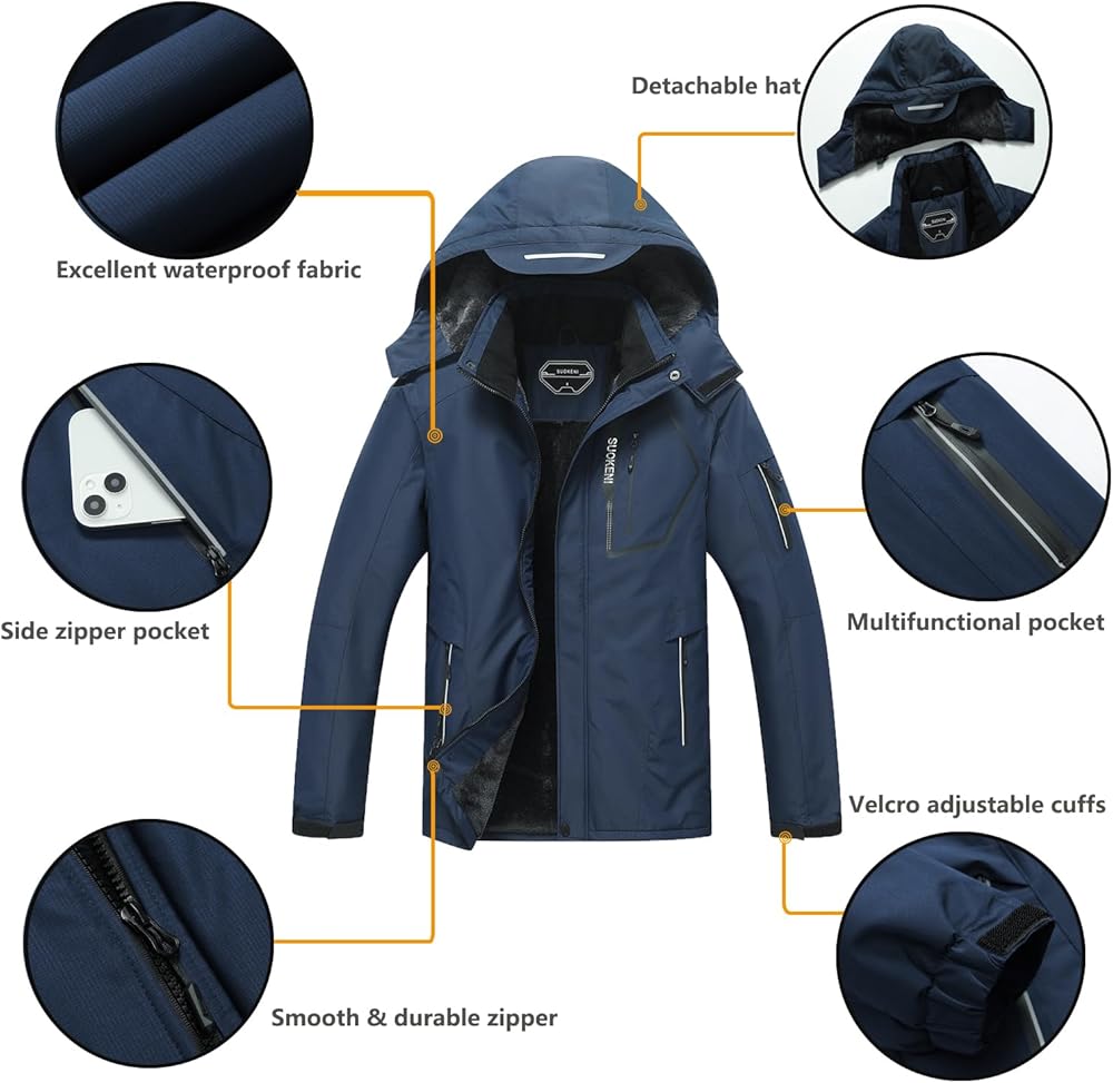 مقاوم للماء: معطف شتوي رجالي مصنوع من نسيج مقاوم للماء وجيد التهوية، وجميع السحابات بتصميم مقاوم للماء، والنسيج المقاوم للماء يمكن أن يمنع تسرب مياه الأمطار إلى سترة التزلج وفي الوقت نفسه يزيل العرق في الوقت المناسب.