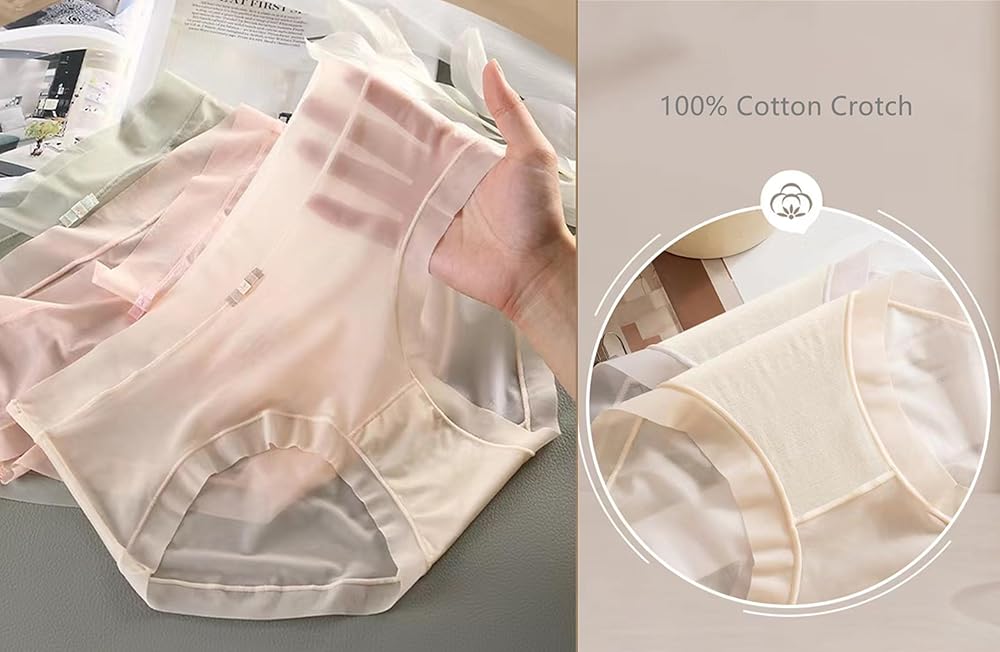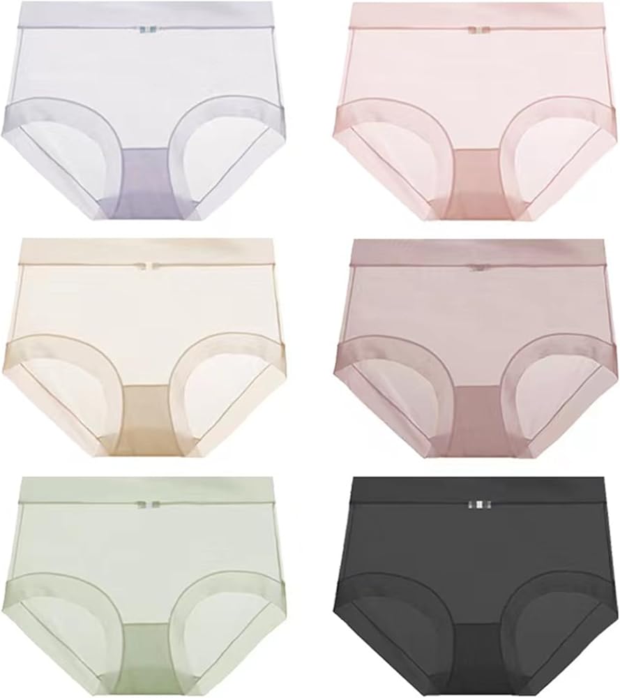 UUONLY سراويل داخلية قصيرة من الحرير الجليدي رفيعة للغاية للنساء، 6 عبوات من الحرير الجليدي بدون خياطة ملابس داخلية متوسطة الارتفاع قابلة للتنفس