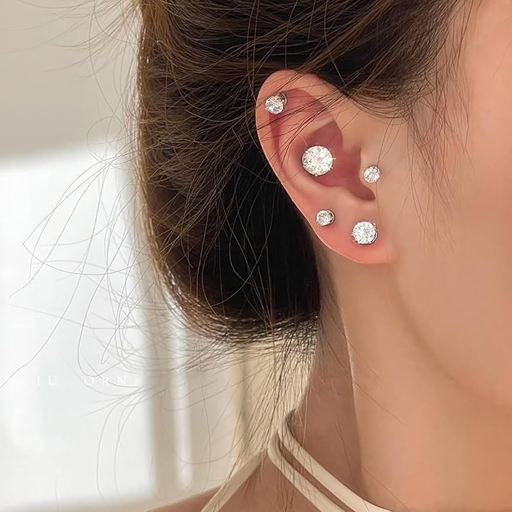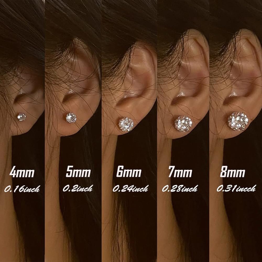 Set:One set of silver stud earrings includes 5 pairs, each of 4mm/5mm/6mm/7mm/8mm,cubic zirconia from small to large, to meet your needs for multiple sizes, you can try different sizes every day to match the look.