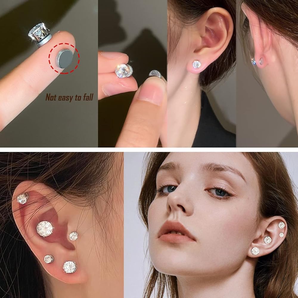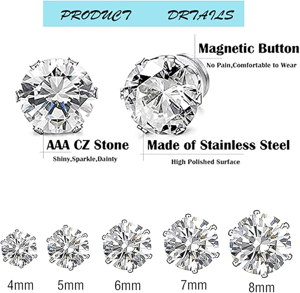 Material:The magnetic earrings are made of high-quality stainless steel and cubic zirconia, exquisite electroplating and polishing process is not prone to allergies and fading. It is healthy, safe and comfortable to wear, and protects your sensitive ears.