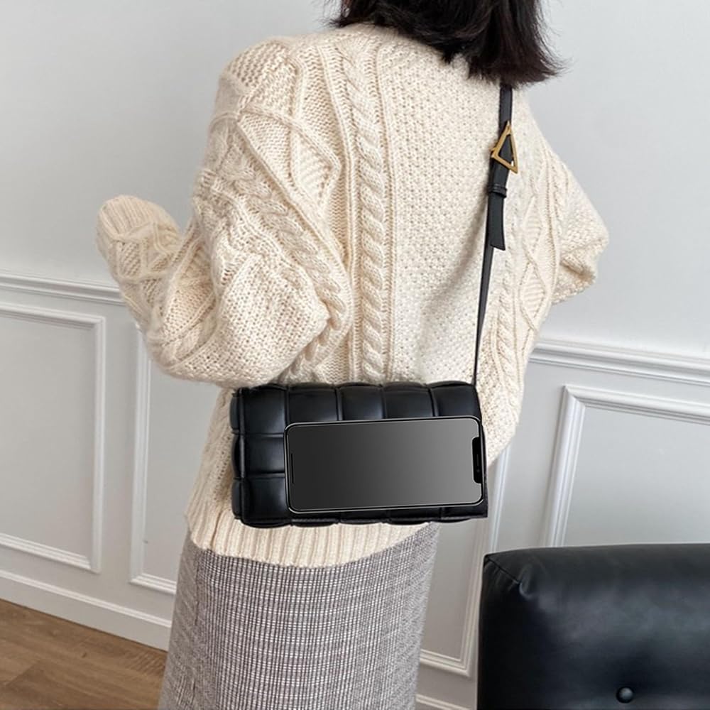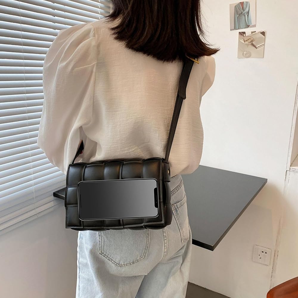 【الخامة】شنط مربعة منسوجة للنساء مصنوعة من جلد البولي يوريثين عالي الجودة، ناعمة جدًا ومتينة، اضبط الإبزيم ورتب خط السيارة. لا يجلب الشكل المستطيل البسيط مظهرًا عصريًا ورائدًا فحسب، بل يزيد أيضًا من العملية وسعة حقيبة الكتف.