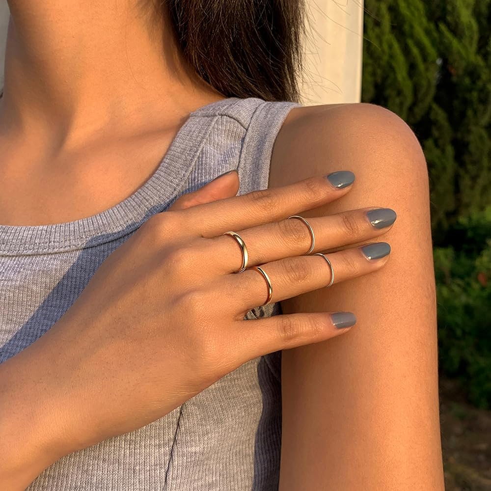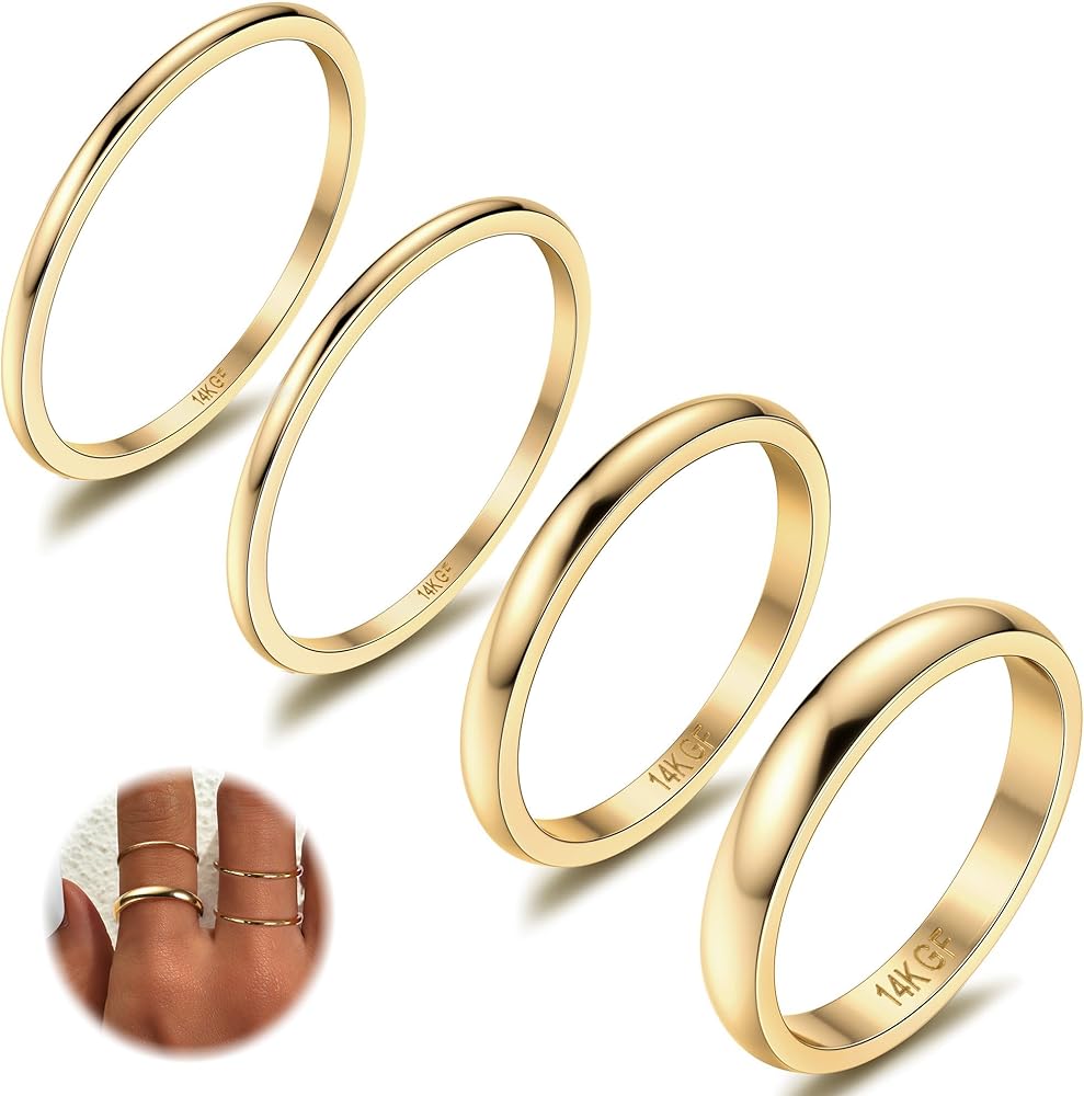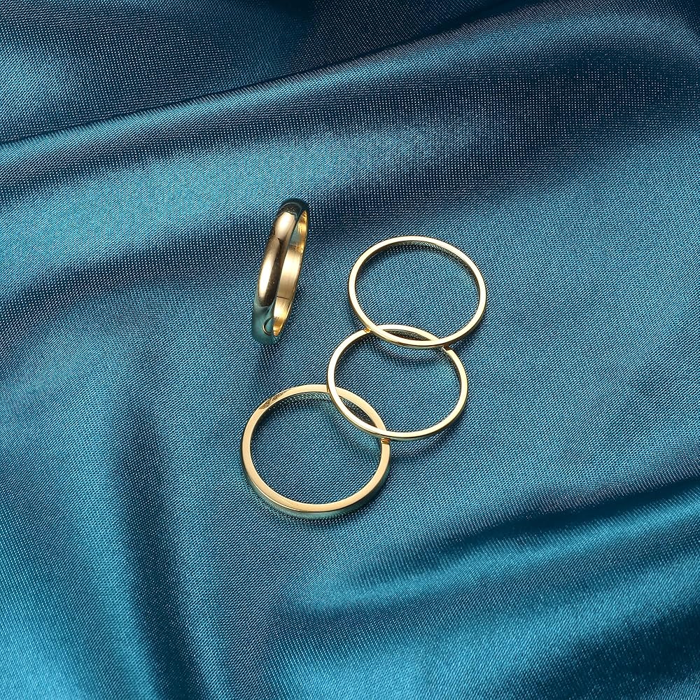 【مجموعة خواتم ذهبية عصرية】تحتوي العبوة على 4 قطع من الحلقات المملوءة بالذهب. تصميم كلاسيكي وحديث، بسيط ولكنه جمالي. سواء تم ارتداؤها بمفردها أو في عدة مجموعات، فإن هذه الخواتم الذهبية ستبرز أصابعك النحيلة وتظهر أناقتك وبريقك. يمكن أن تتكيف الخواتم الذهبية للنساء بسهولة مع مجموعة متنوعة من الملابس اليومية.