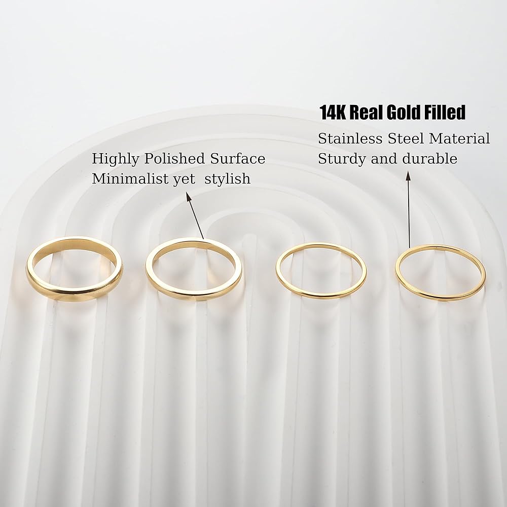【هدية مثالية】مجموعة الخواتم الذهبية الرائعة هذه عيار 14 قيراط هي الأكثر شعبية بين النساء والفتيات في المجوهرات النسائية. مجموعة الخواتم المملوءة بالذهب هي هدية مثالية لحبيبتك أو زوجتك أو صديقتك أو أختك أو أمك أو أصدقائك أو غيرها من الأشخاص المهمين في عيد الحب، والذكرى السنوية، وأعياد الميلاد، والزفاف، والكريسماس، واليومي وما إلى ذلك.