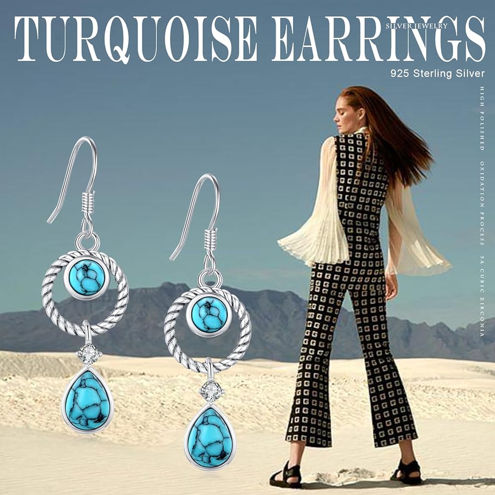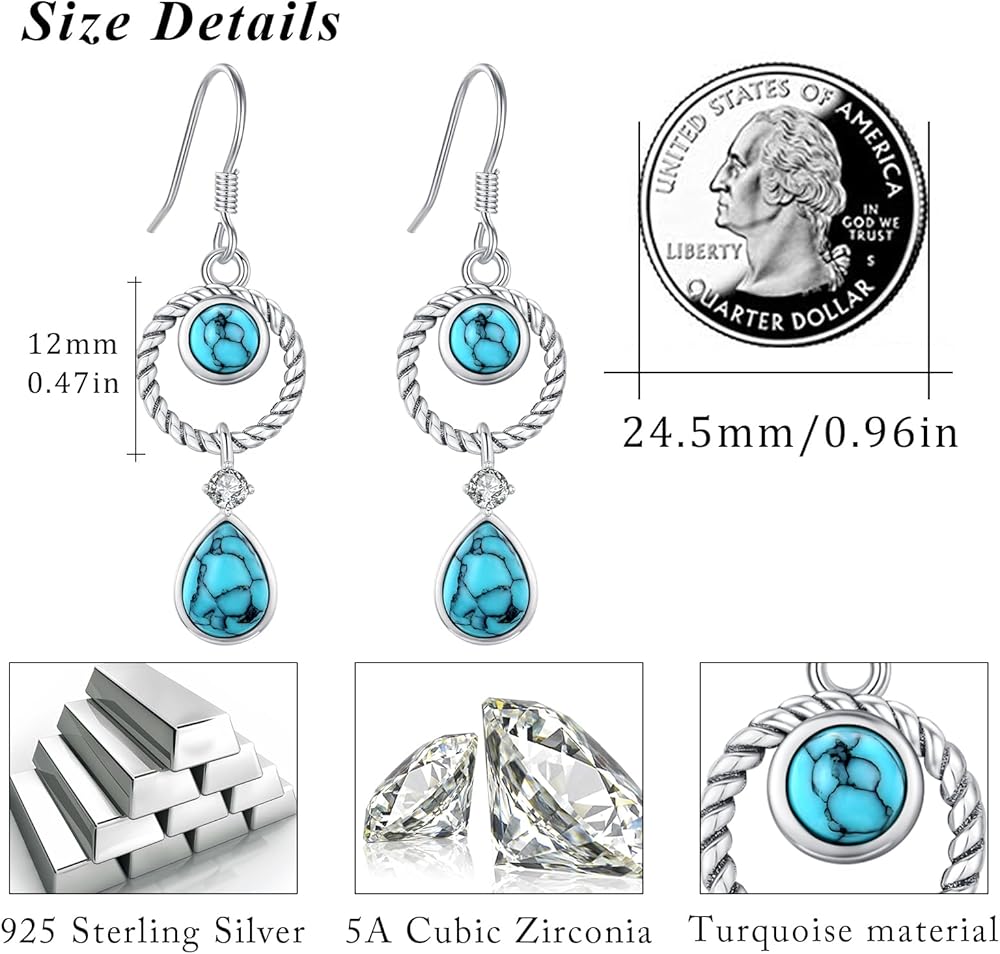 • 【Best Jewelry Gift】Sterling silver turquoise earrings for women is the perfect gift for turquoise lovers, also suitable as birthday gifts, commemorative gifts, anniversaries, career gifts, Valentine's gifts, Mother's Day gifts, Thanksgiving gifts, Christmas gifts for mother, grandma, wife, girlfriend, sister, daughter, colleague, friend, teacher, aunt, etc.