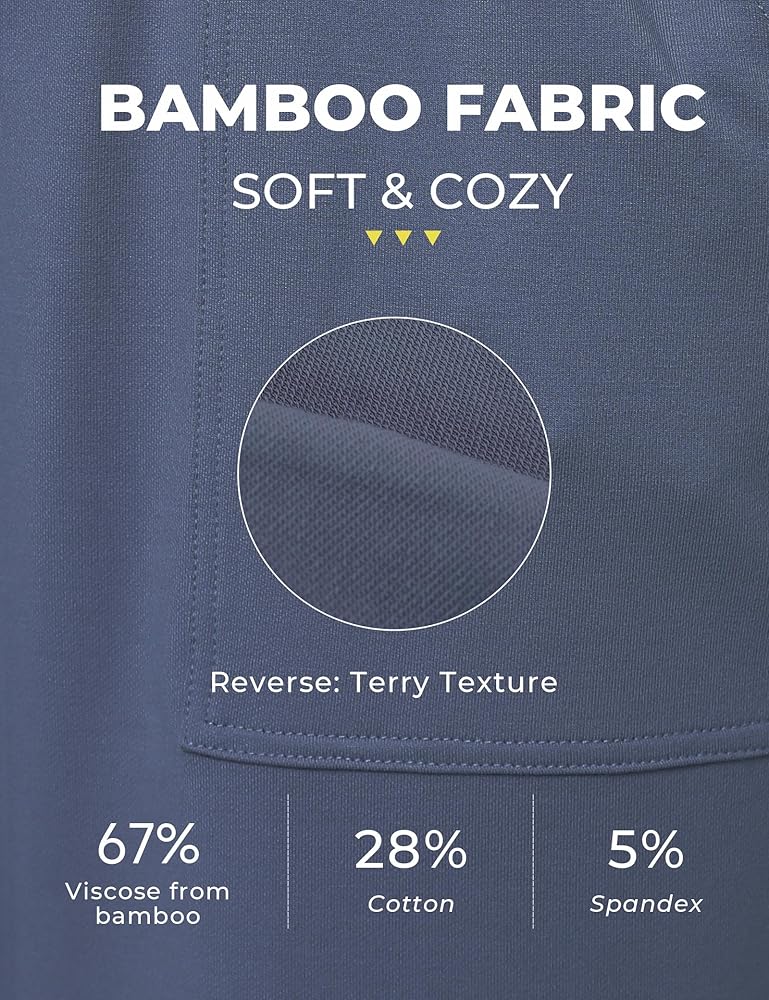 • نسيج عالي الجودة: مصنوع من 67% فيسكوز مشتق من الخيزران، و28% قطن، و5% ألياف لدنة. بنطال بيجامة الركض فائق النعومة وخفيف الوزن ومطاط