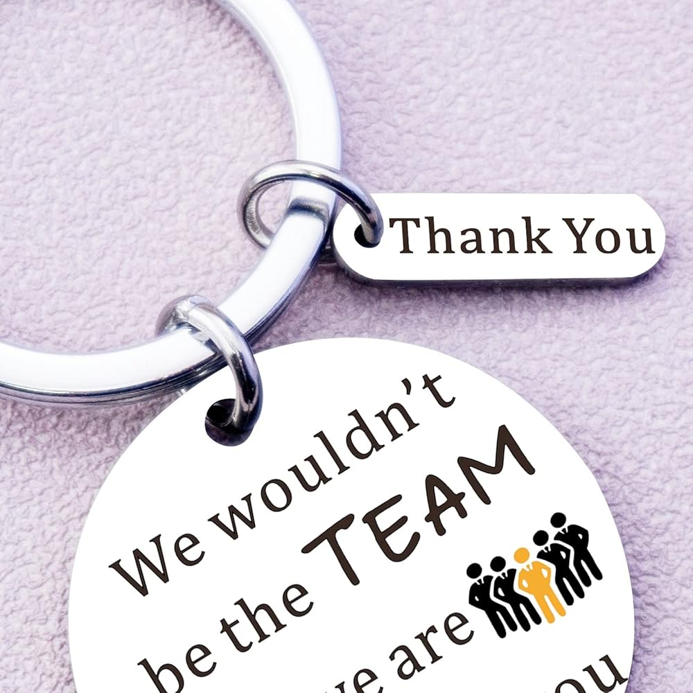 • سلسلة مفاتيح تقدير لقائد الفريق: "We wouldn't be the team that we are without you" مع تعليقة "Thank you". هدية شكر رائعة لمدربك وقائد الفريق والمدير والرئيس والمعلم للتعبير عن شكرك وإعلامهم بمدى أهميتهم بالنسبة لك.