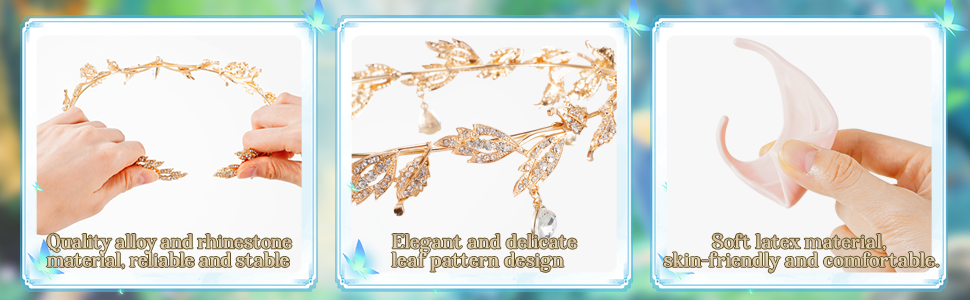 مناسبات قابلة للتطبيق على نطاق واسع: هذه الأذنين ذات الأطراف المدببة الناعمة وعصابة الرأس المصنوعة من الفضة الكريستالية مناسبة للمناسبات المختلفة، مثل أزياء الهالوين والكريسماس وحفلات الزفاف والحفلات الخيالية والحفلات التنكرية وأعياد الميلاد والكرنفالية والحفلات التنكرية والحفلات الموسيقية والتجمعات وغيرها