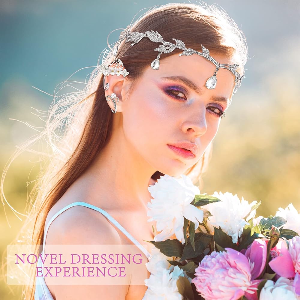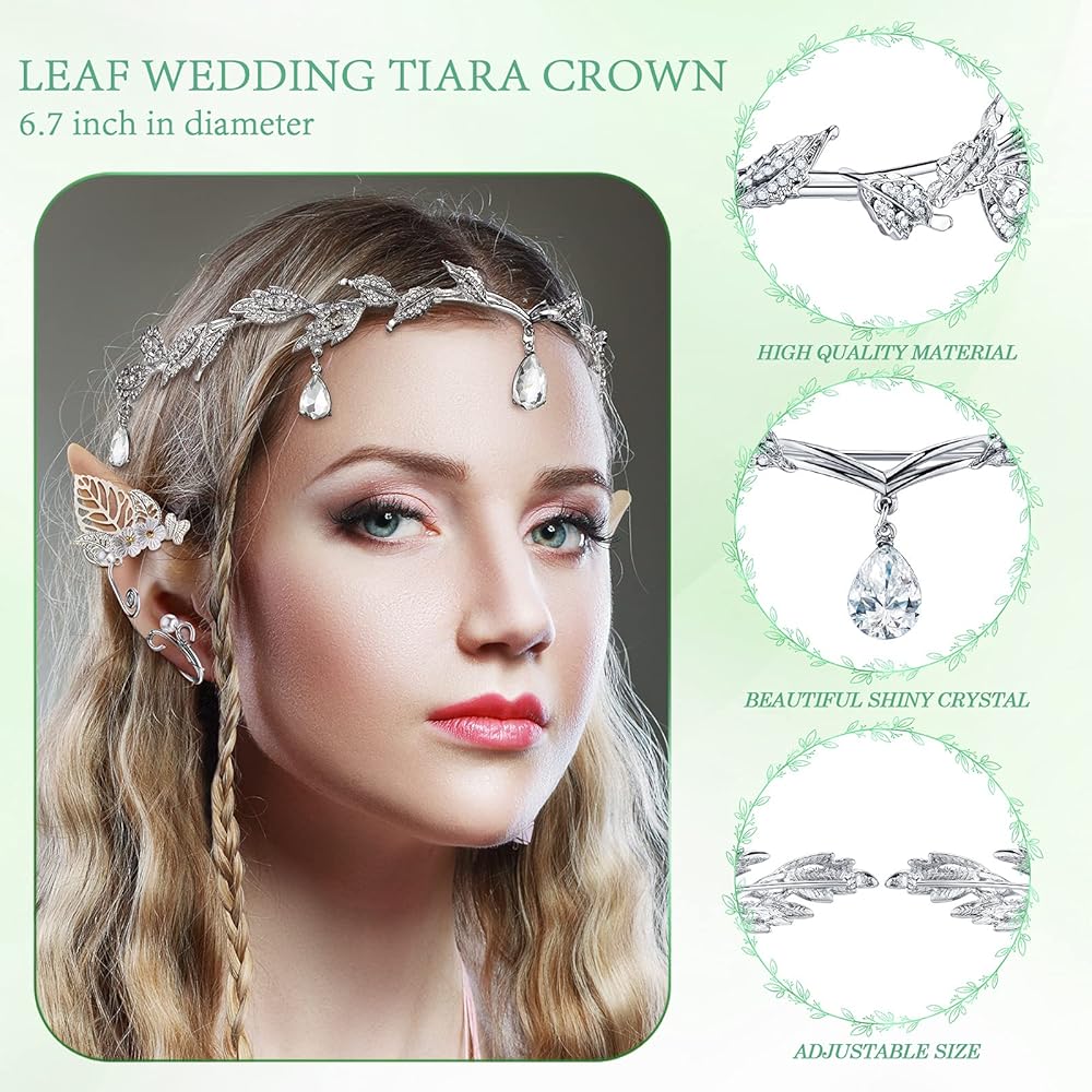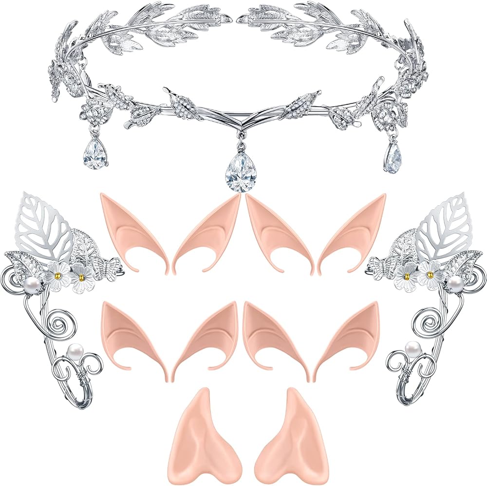 ما ستحصل عليه: هناك 5 أزواج من آذان قزم بيكسي الجنية، قطعة واحدة من تاج الزفاف من أحجار الراين و1 زوج من أساور أذن قزم في العبوة، كمية كافية وأنماط متنوعة، بما يكفي لتلبية احتياجاتك المتعددة من الأزياء في مناسبات مختلفة
