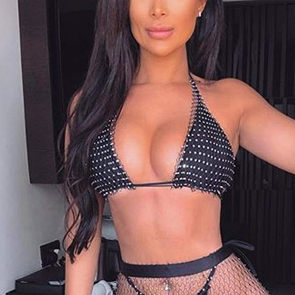 مجموعة البكيني المصنوعة من حجر الراين مصنوعة من شبكة عالية الجودة وكريستال لامع. لن تسقط بلورتها بعد عملية الفسيفساء. إنها رائعة وتجعلك تبدو ساحرًا.