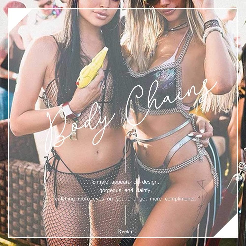 مجموعة سلسلة الجسم الشبكية للنوادي الليلية تحتوي على حبل مرن. حجم مجاني للنساء والفتيات. يمكنك تعديلها حسب مقاسك الخاص حتى تترك سلسلة الجسم البكيني الأنيقة هذه حول جسمك بشكل مثالي.
