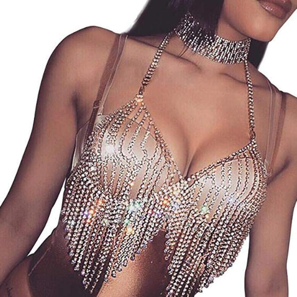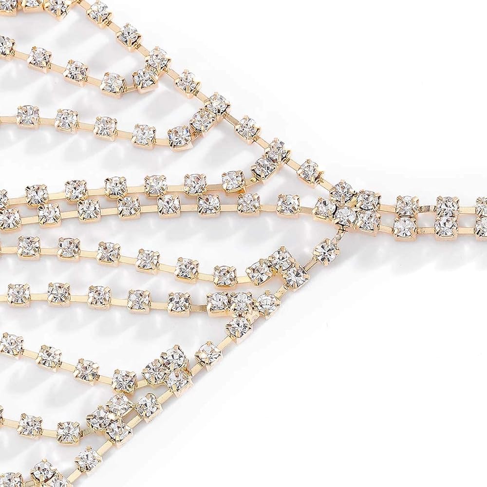 Victray حجر الراين سلسلة الجسم كريستال مجوهرات الجسم مهرجان ملحق الجسم للنساء والفتيات (الذهب)
