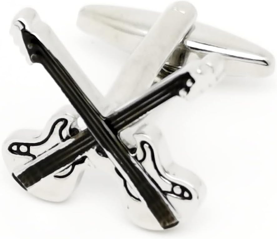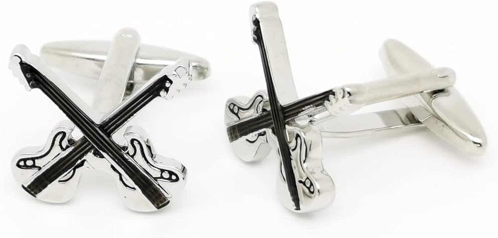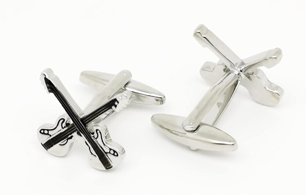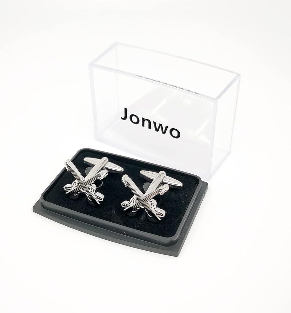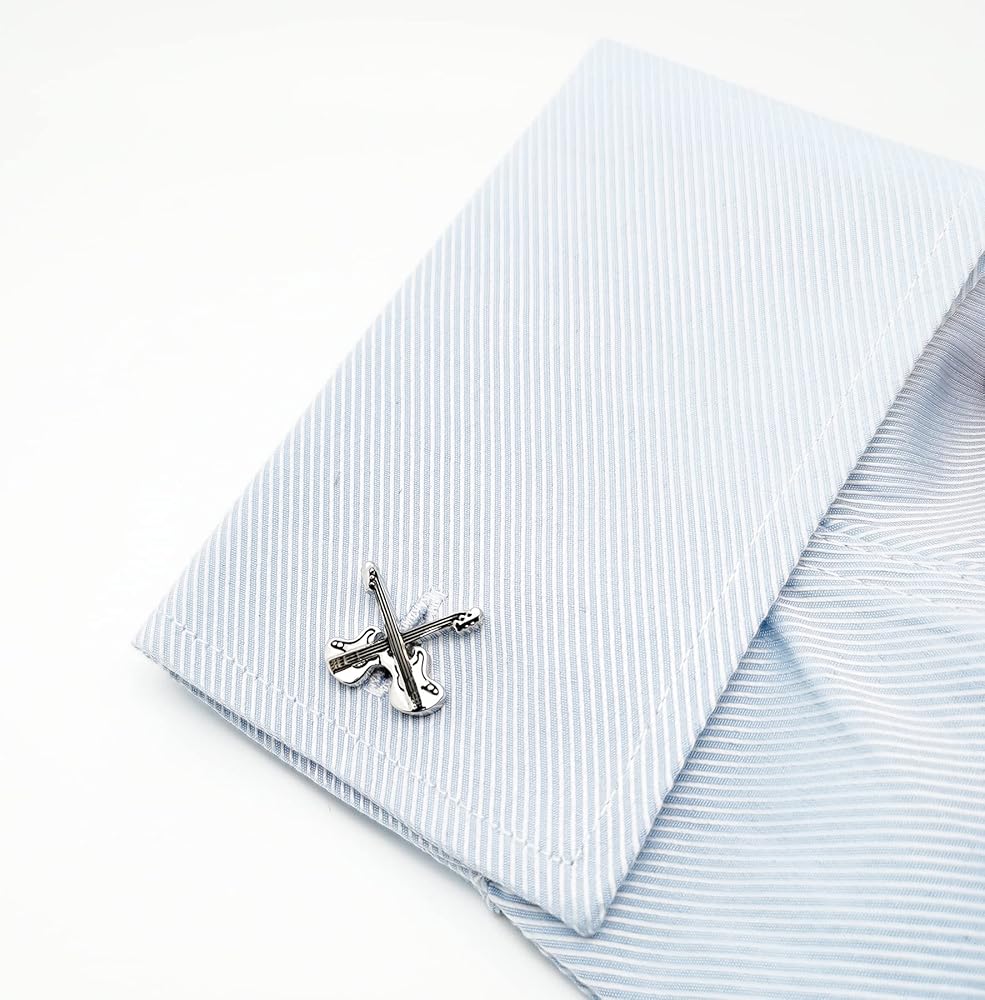 أزرار أكمام جيتار كهربائية فضية اللون من جونو في صندوق هدايا للجنسين أزرار أكمام معدنية مناسبة للعمل والزفاف والذكرى السنوية