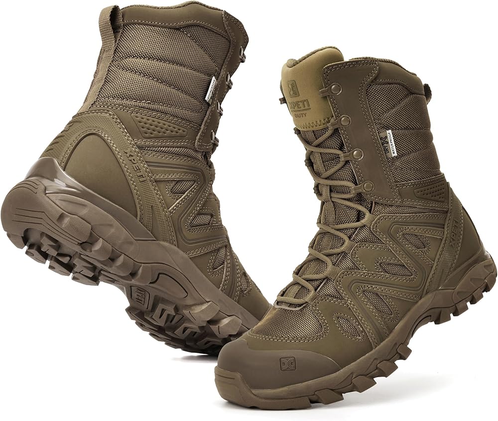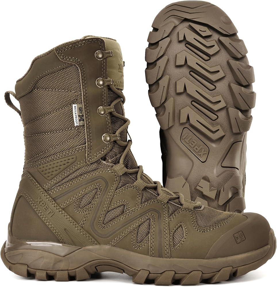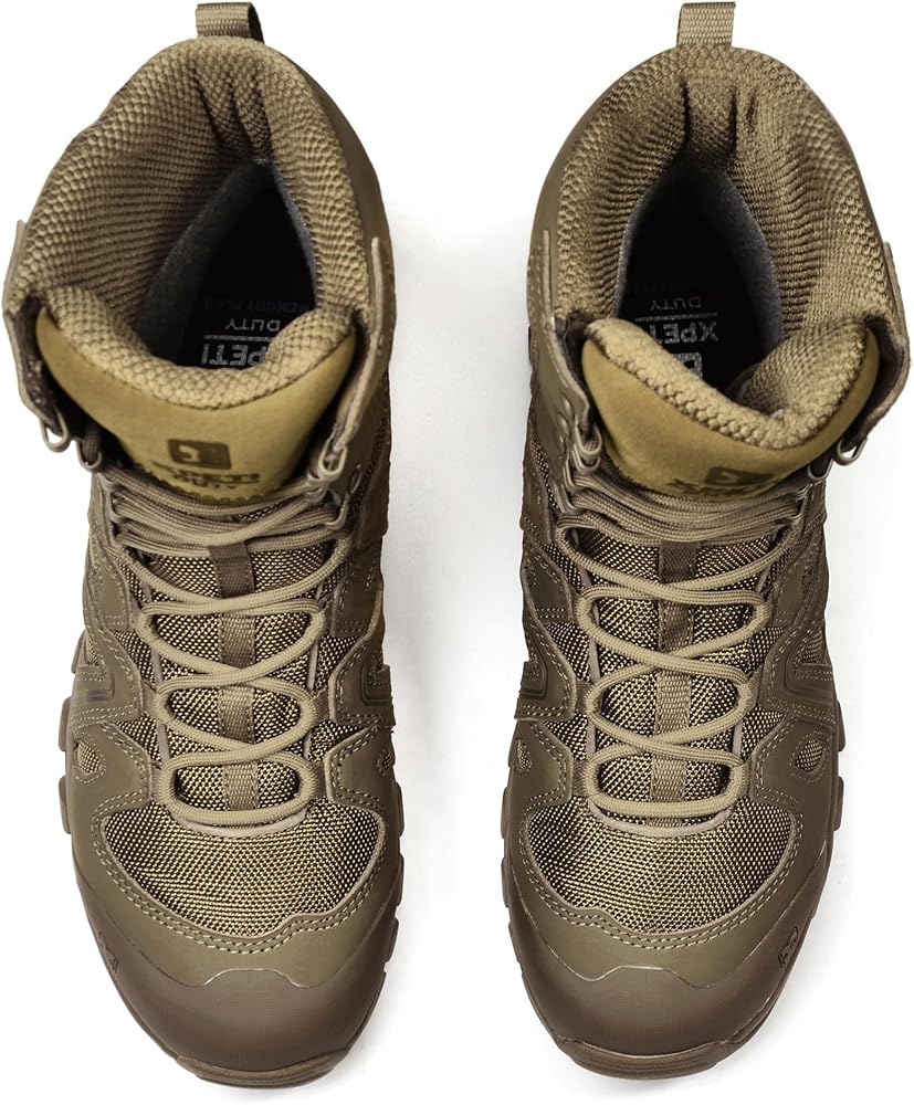 - جلد متين وجزء علوي من القماش المقاوم للتآكل، غشاء من الدرجة العسكرية DRY-X مقاوم للماء وبطانة شبكية ماصة للرطوبة
